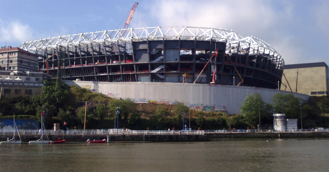 2004년 초, 새 경기장 건설 계획의 첫 단계가 시작되었다.[23] 2006년 3월, 건설 계획이 승인되었고, 같은 해 말에 초기 계약이 체결되었다. 새 경기장은 2003년까지 빌바오 국제 무역 박람회가 사용했던 부지인 기존 산 마메스 경기장 바로 옆에 건설되었다.