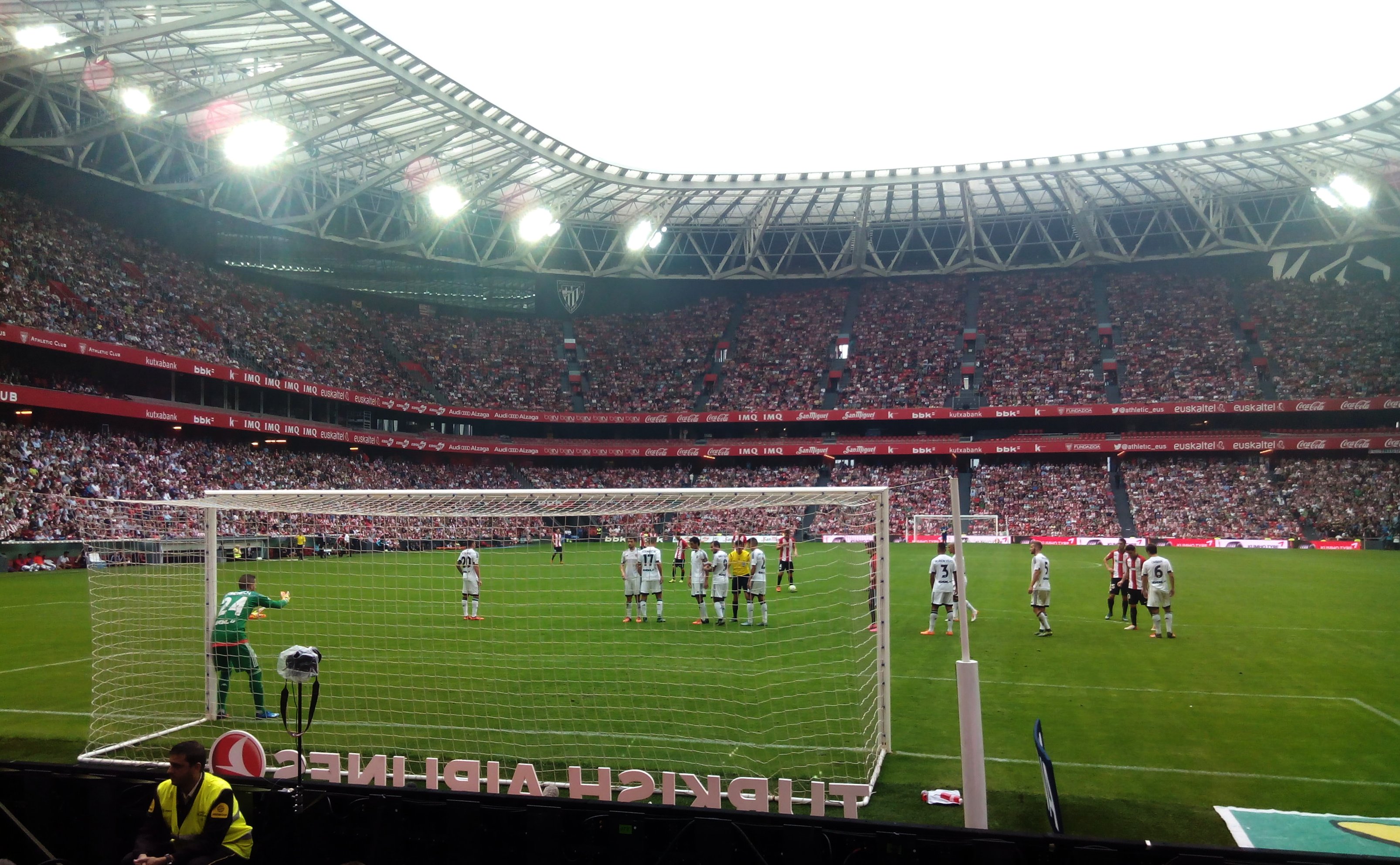 경기장 전체 수용 인원으로 치러진 첫 경기는 2014년 8월 27일 챔피언스 리그 플레이오프에서 나폴리를 상대로 열렸으며, 49,017명이 참석했다. 아틀레틱은 3-1로 승리하여 대회 조별 예선에 진출했다.[15]2. 4. 지붕 확장