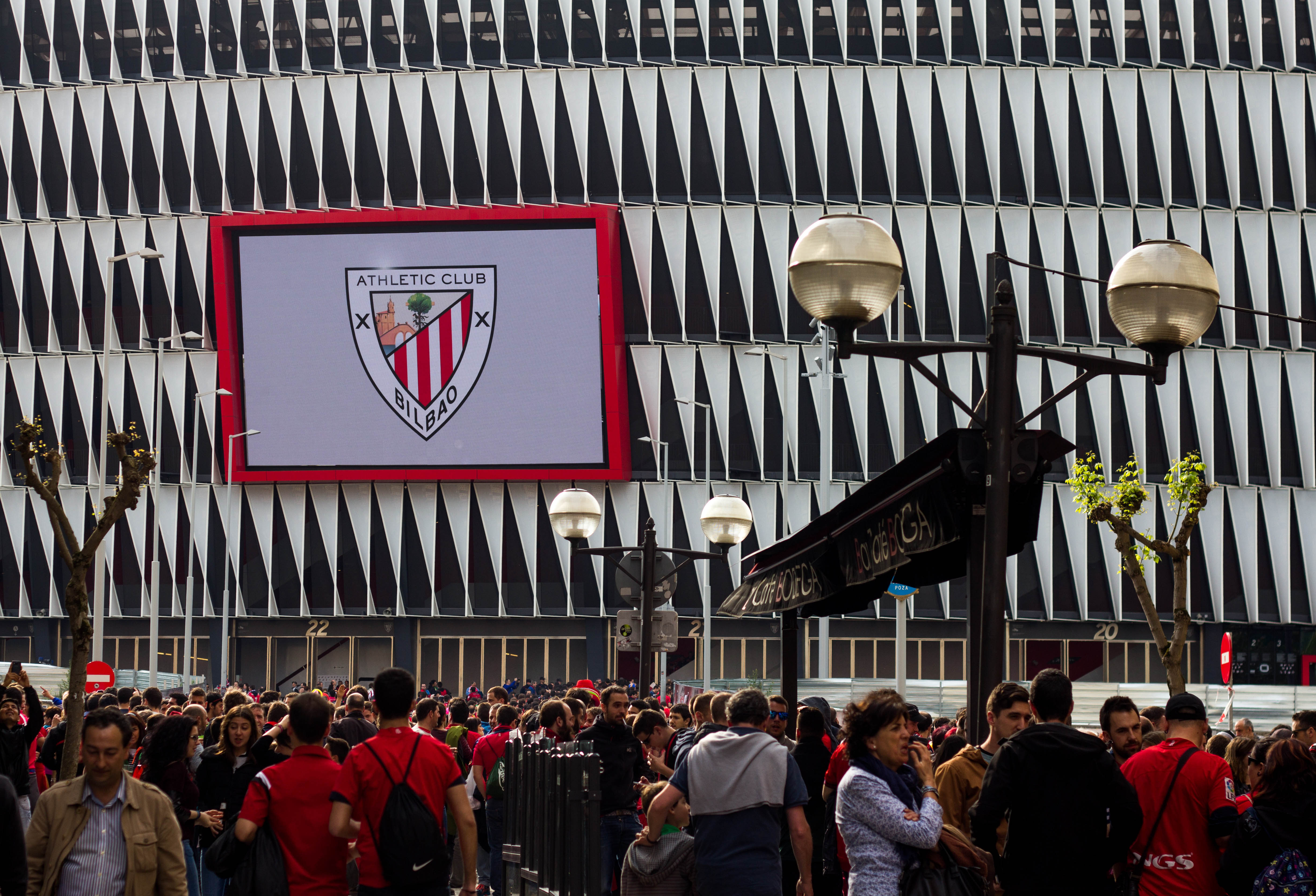 2015년부터 경기장에는 초대형 외부 비디오 스크린(15.5m X 9.8m)이 설치되었다.[24] 이 스크린은 경기장으로 이어지는 도시 중심부에서 뻗어있는 거리인 "Pozas"를 향하고 있으며, 경기일에는 팬들이 즐겨 찾는 산책로이자 아틀레틱 테마의 바가 늘어서 있다.
