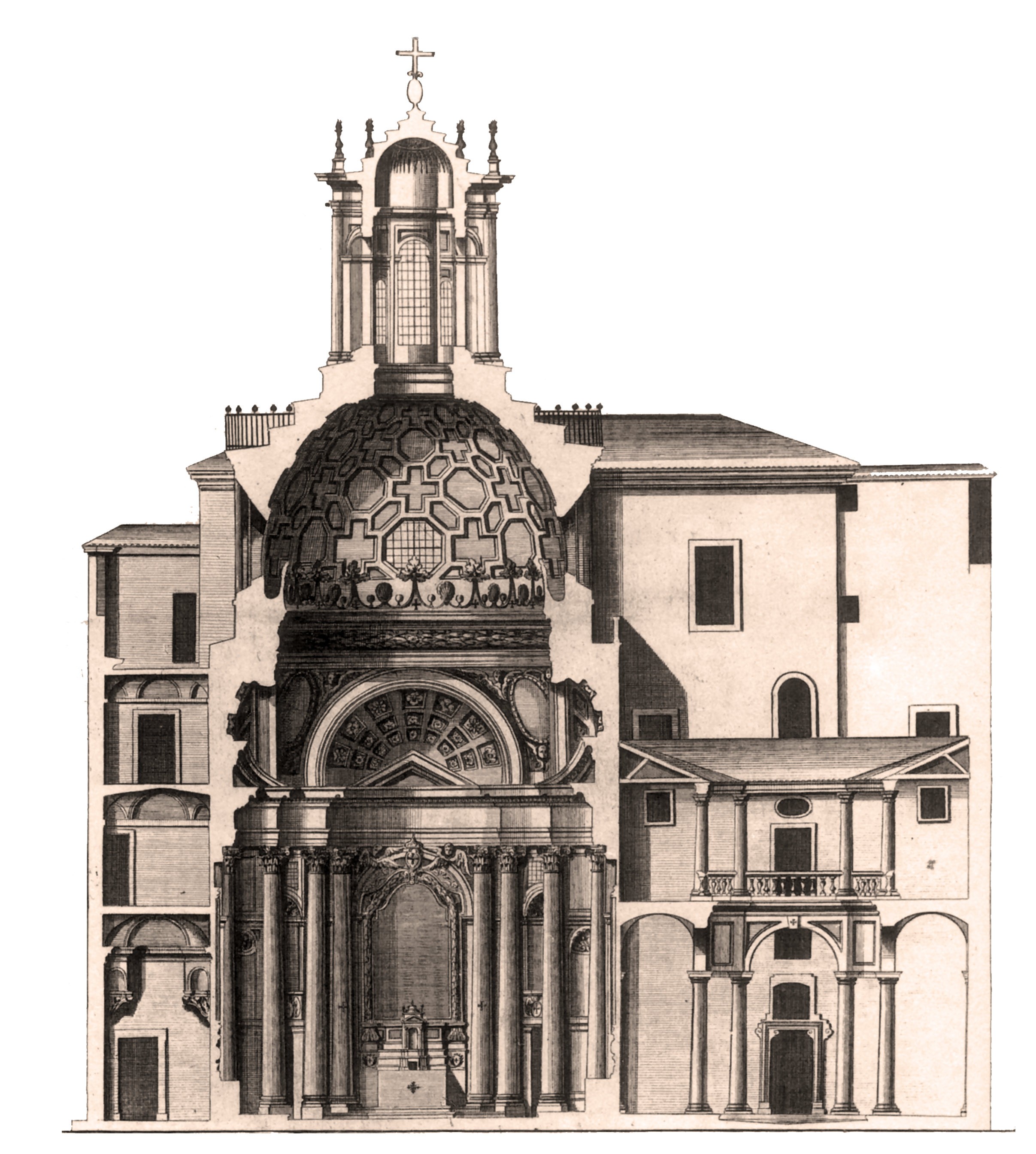 산 카를로 알레 콰트로 폰타네 성당의 단면, 약 1730년