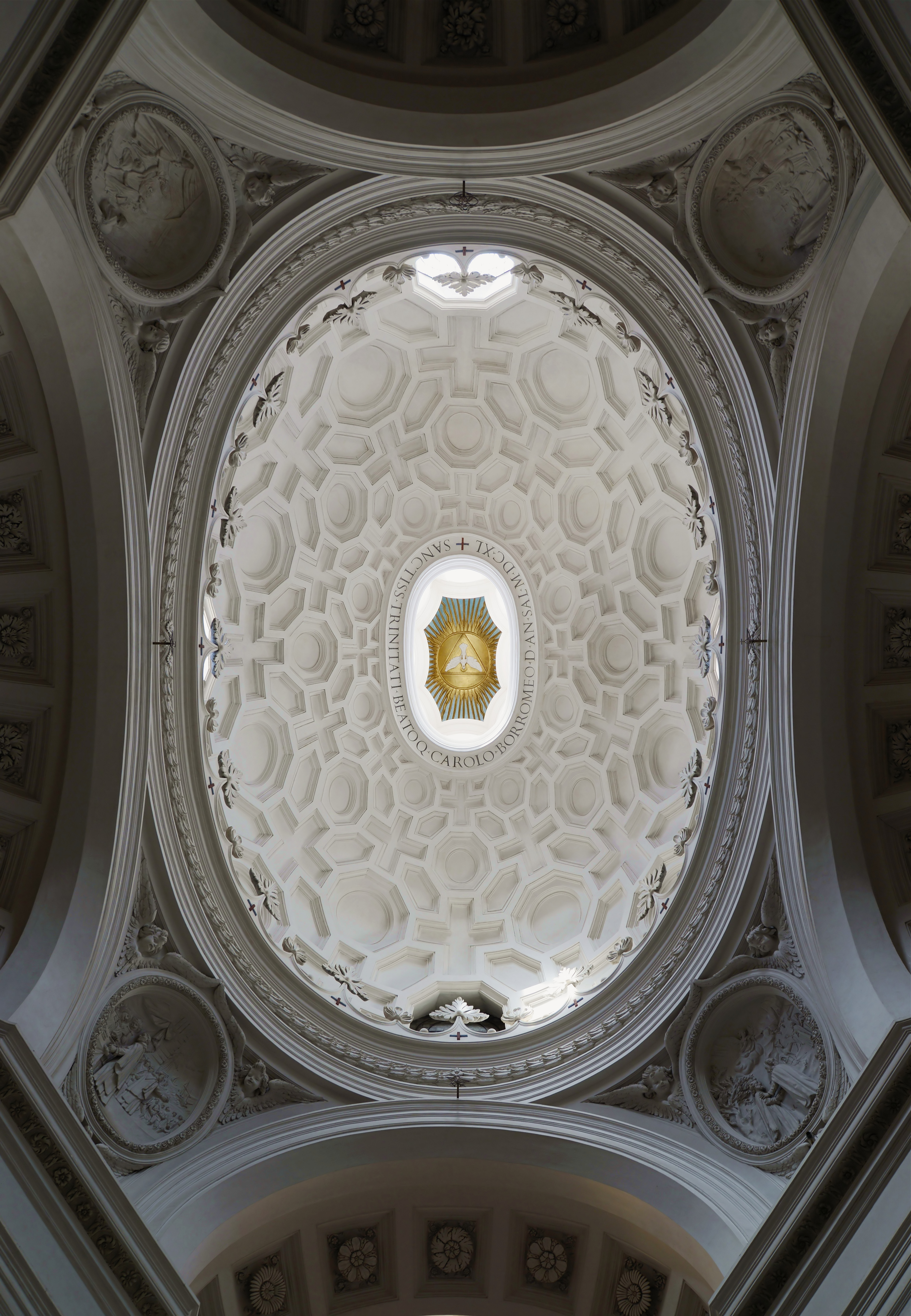의 기초가 되는 타원형의 엔타블레이처에는 나뭇잎 모양의 "관"이 장식되어 있다. 돔 내부 벽에는 팔각형, 십자형, 육각형을 조합한 격자 무늬가 시공되어 있는데, 이 무늬는 위로 올라갈수록 점차 작아지는 형태를 띤다. 빛은 돔 아랫부분 사방에 있는 창문과 꼭대기의 천창을 통해 내부로 들어오도록 설계되었다. 특히 성삼위일체의 상징이 그려진 천창 부분이 가장 밝게 빛나며, 돔 내부 벽의 격자 무늬는 아래로 내려갈수록 점차 어두워지는 명암 효과를 보여준다.[13][14][15][16]