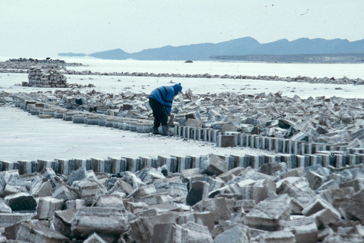 리튬은 소금 지각 아래의 염수에 약 0.3%의 비교적 높은 농도로 농축되어 있다. 또한 염수 아래에 있는 다공성 할라이트 몸체의 상층에도 존재하지만, 액체 염수는 지각에 구멍을 뚫고 염수를 퍼내어 추출하기가 더 쉽다. 염수 분포는 랜드샛 위성으로 모니터링되었으며, 지상 시추 테스트에서도 확인되었다. 이러한 발견에 따라 미국의 한 국제 기업은 리튬 추출 개발에 1.37억달러를 투자했다.[14] 그러나 1980년대와 1990년대에 외국 기업들의 리튬 추출은 지역 사회의 강력한 반대에 부딪혔다. 지역 주민들은 광산으로 유입된 자금이 자신들에게 도달하지 않을 것이라고 믿었다.[15] 소금 사막의 리튬에는 더 많은 불순물이 포함되어 있으며, 습한 기후와 높은 고도로 인해 가공이 더 어렵다.[16]