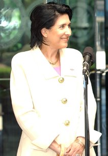 2004년, 조지아 국적을 취득함과 동시에 미헤일 사카슈빌리 대통령에 의해 외무부 장관으로 임명되어 3월 18일 취임하며 조지아 정치에 본격적으로 참여하기 시작했다.[119] 조지아 역사상 첫 여성 외무부 장관으로서, 조지아 내 러시아 군사 기지 철수를 위한 협상을 이끌어 2005년 세르게이 라브로프 러시아 외무장관과 협정을 체결하는 성과를 거두었다.[120] 또한 조지아의 북대서양 조약 기구(NATO) 가입 및 유럽 통합 노력을 지원하기 위한 외교 활동을 펼쳤다.