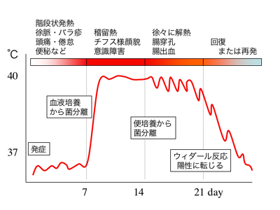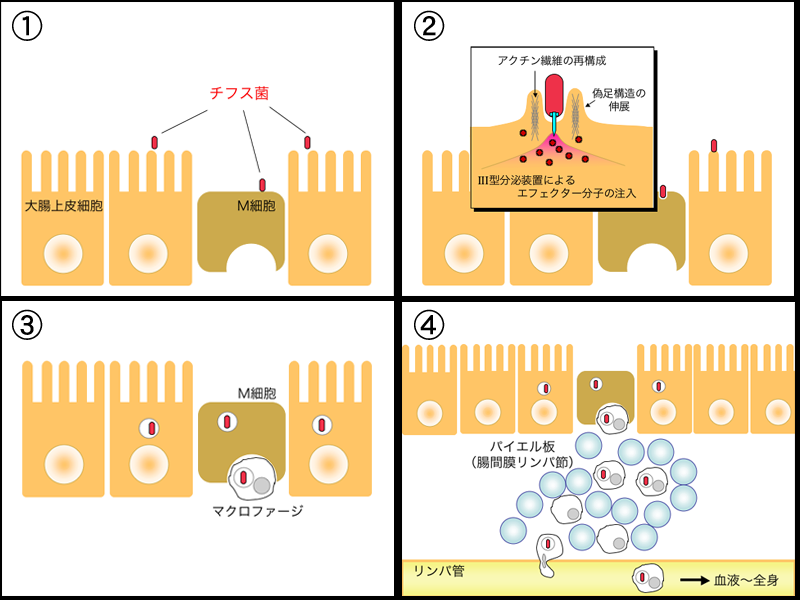 살모넬라속 세균 중 티푸스균과 파라티푸스균은 대식세포에 감염되어 그 내부에서 증식하며, 이것이 장티푸스 발병에 관여한다. 살모넬라는 이물질로 인식되어 대식세포에 의해 식작용(포식작용)을 받는다.