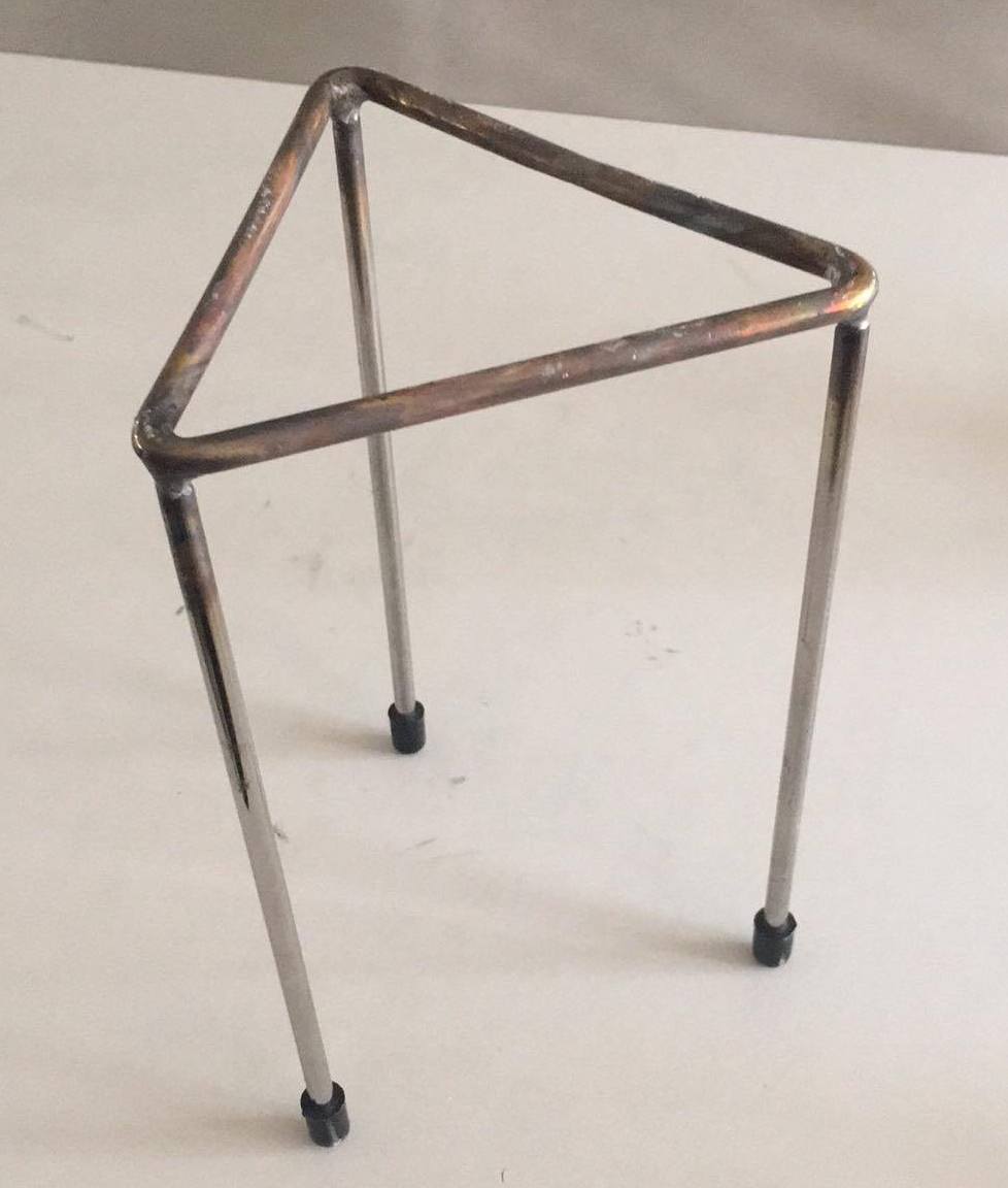 화학 실험에 사용되는 삼각대는 금속으로 만들어졌으며, 윗부분은 둥근 링 모양이고, 세 개의 다리로 지지된다. 삼각대나 금속 망을 위에 놓고 그 위에 플라스크 등을 올려 가열할 때 사용한다.