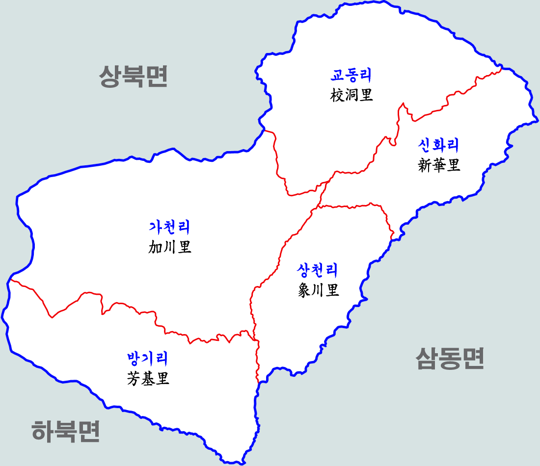 | 법정리 | 교동리, 상천리, 신화리, 방기리, 가천리 |