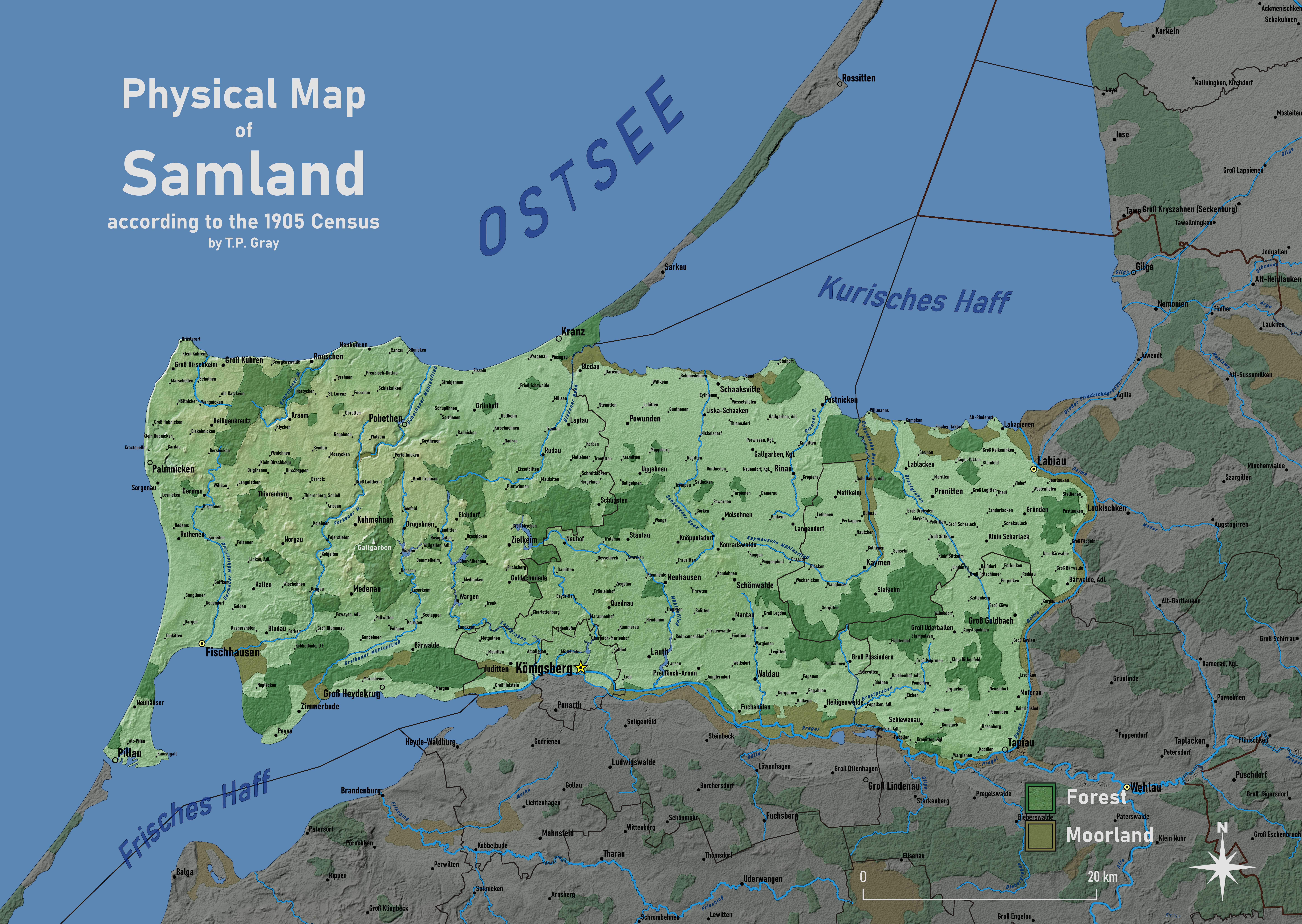 행정 구역상으로는 러시아 칼리닌그라드주에 속하며 북동쪽으로는 쿠로니아 석호, 남서쪽으로는 비스툴라 석호, 남쪽으로는 프레골랴강, 동쪽으로는 데이마강과 접한다.