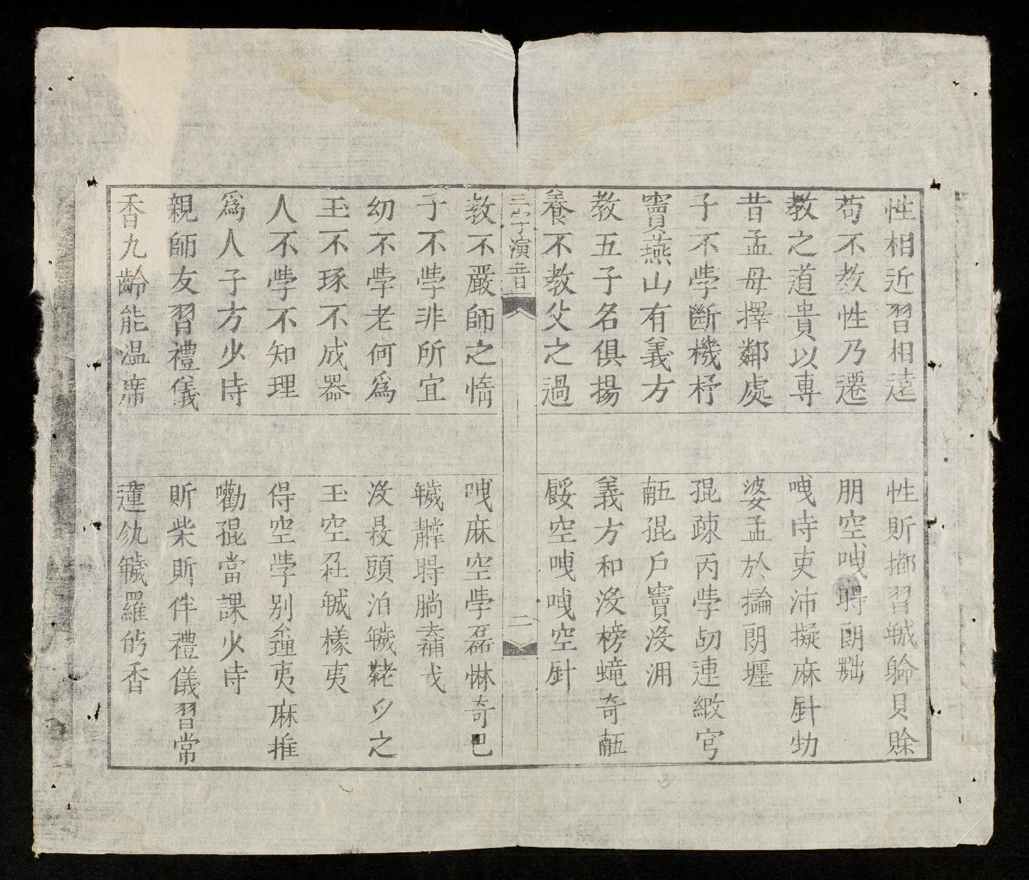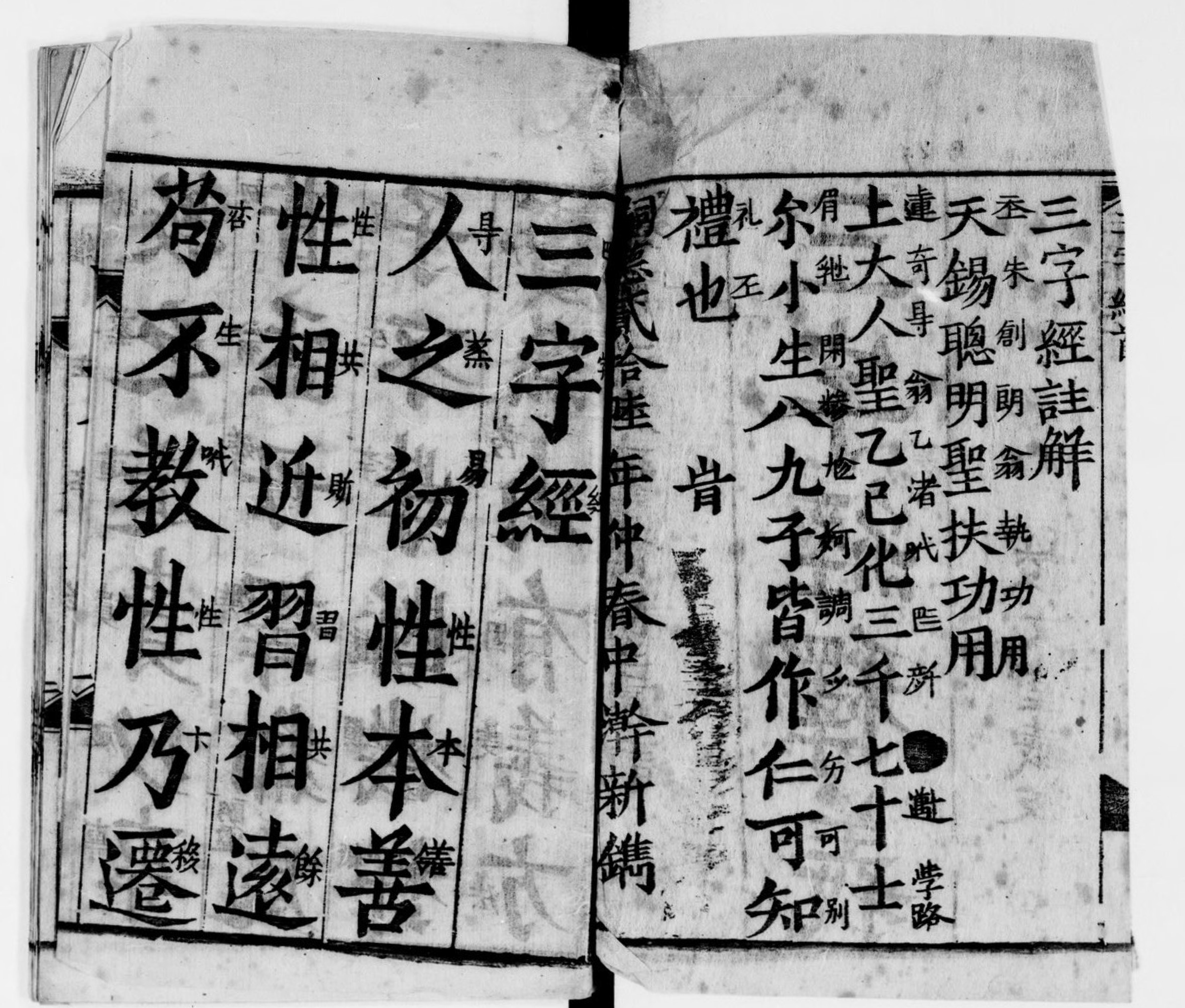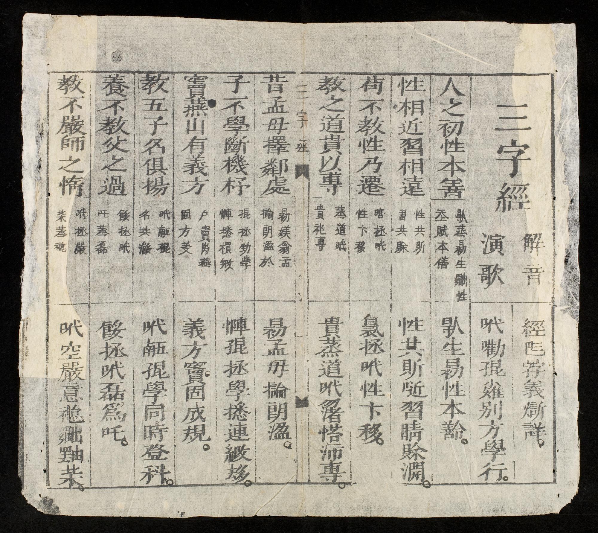 설명 | "인지초 성본선 (人之初 性本善)"으로 시작하는 운문 텍스트 아이들을 가르치기 위해 고안된 것 |