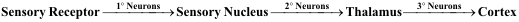 말초에서 대뇌겉질로 가는 감각신경 경로는 촉각-위치와 통증-온도에 따라 나뉜다. 모든 감각 정보는 시상의 신경핵으로 전달된 후, 대뇌겉질의 특정 영역으로 보내진다. 각 경로는 세 개의 신경섬유 다발로 구성된다.[12]