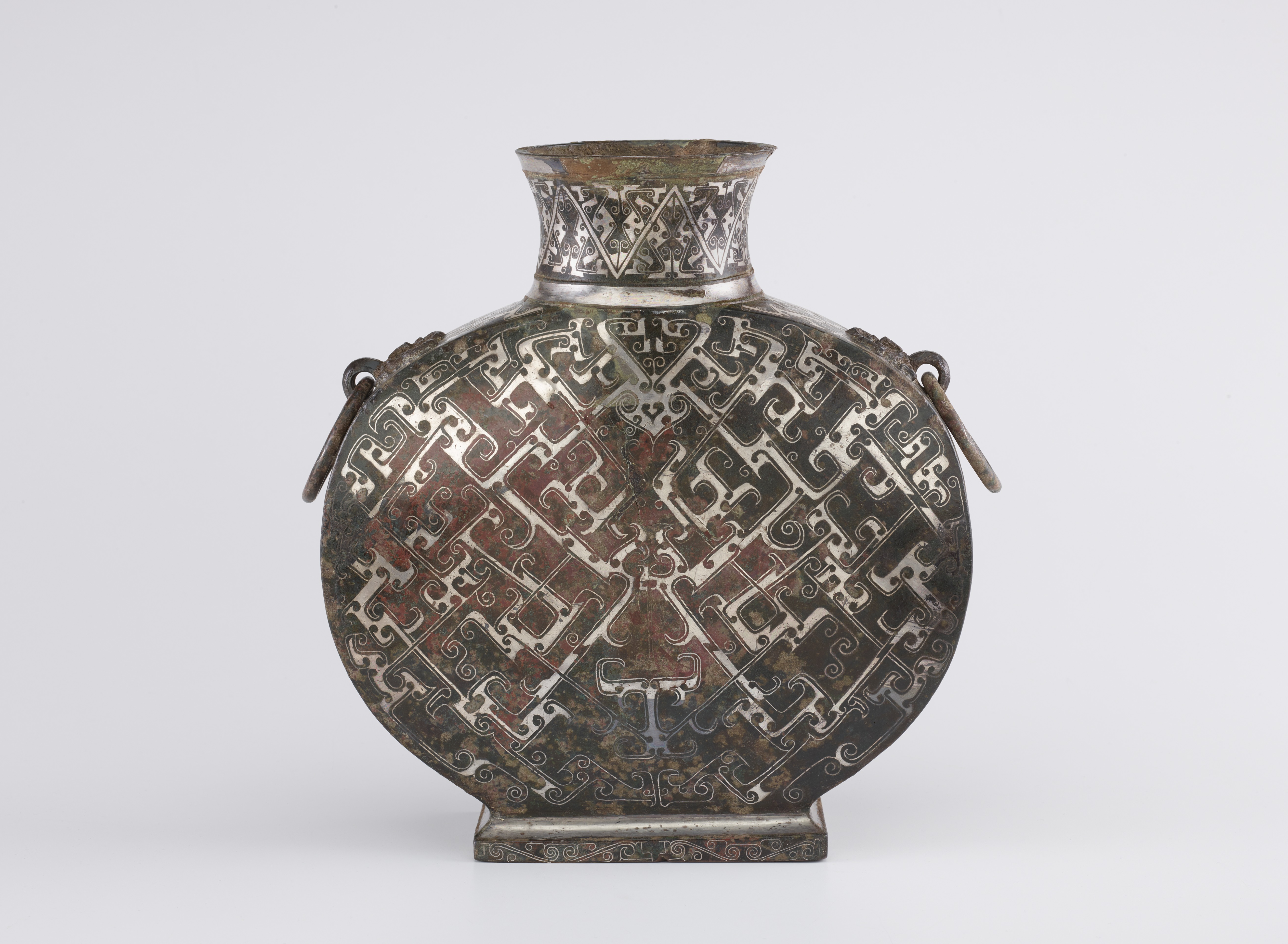 고대 중국에서는 금속에 다른 금속을 박아 넣는 상감 기법이 정교하게 발달하였다. 특히 전국 시대(기원전 403년–221년)에는 청동기에 금이나 은을 상감하여 화려하게 장식한 유물들이 많이 발견된다. 예를 들어, 당시 제작된 정(솥)이나 의례용 플라스크 등에서 이러한 금속 상감 기법의 예를 찾아볼 수 있다.