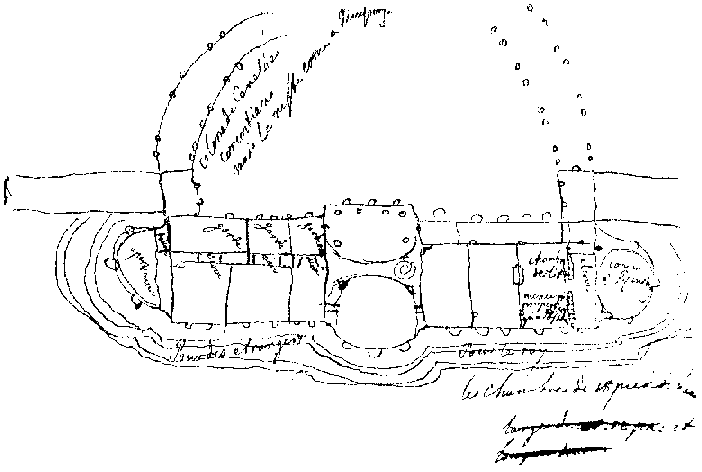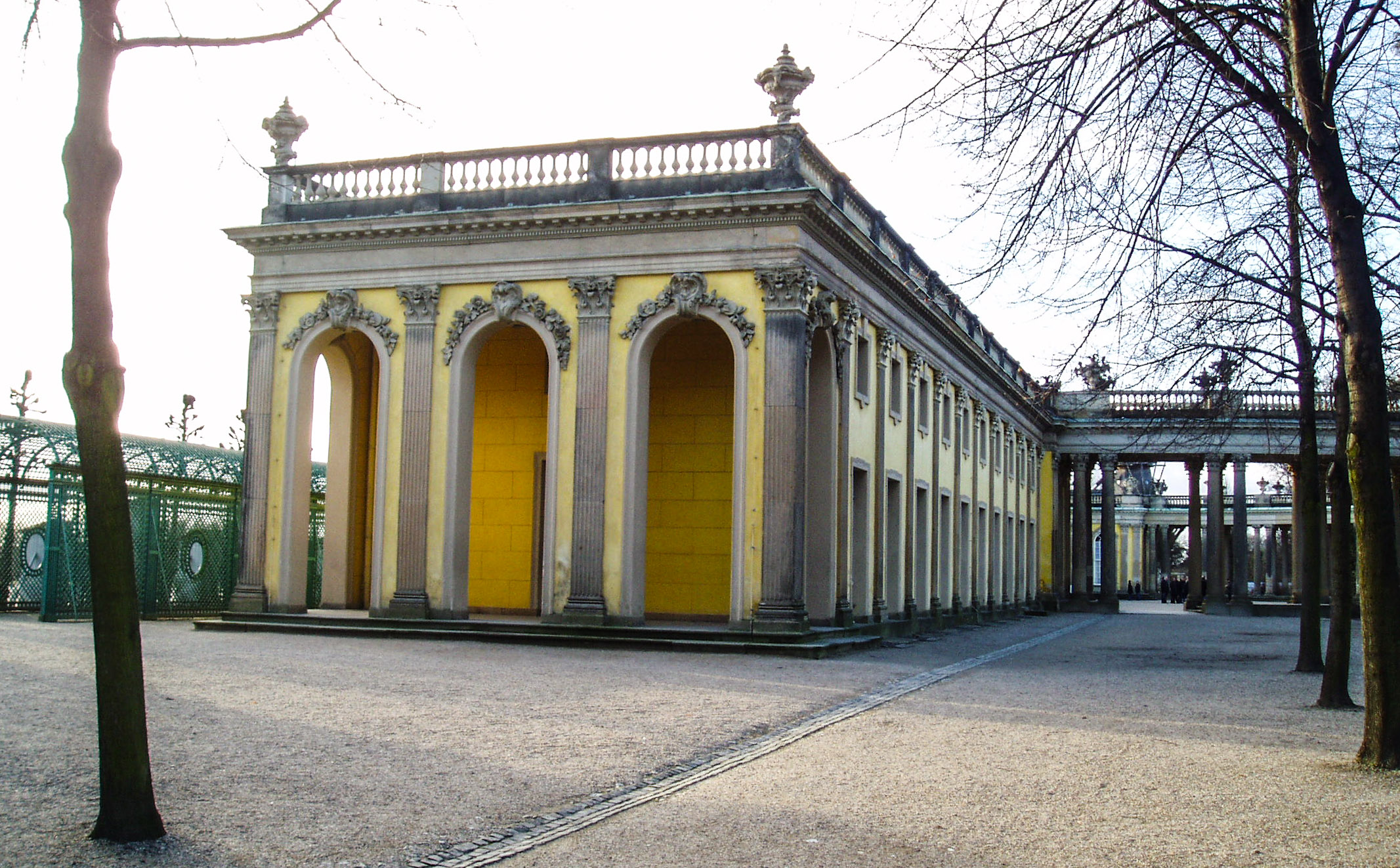 동쪽 윙에는 비서, 정원사, 하인 방이 있었고, 서쪽 윙에는 궁전 주방, 마구간, 레미스가 있었다. 프리드리히 시대에는 이 단층 윙들이 잎으로 덮여 있었다. 1840년에서 1842년 사이 프리드리히 빌헬름 4세에 의해 두 윙 모두에 중이층 바닥이 추가되는 등 확장 공사가 이루어졌다.