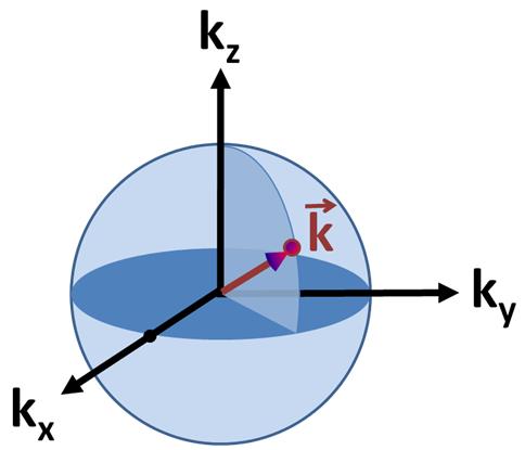 보다 작은 파수 벡터를 포함하는 n차원 -공간의 부피는 다음과 같다.
