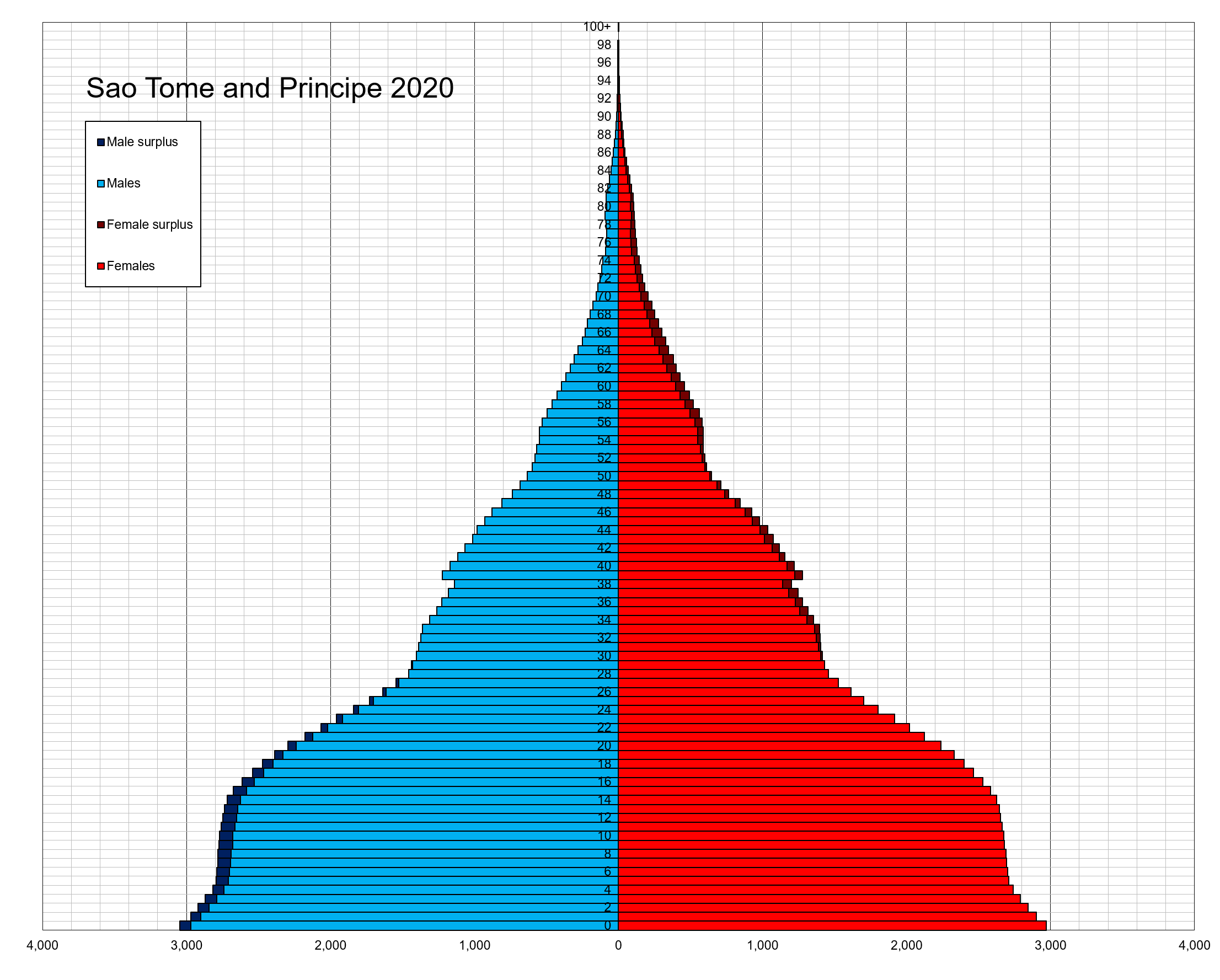 2017년 7월 1일 기준으로 상투메 프린시페의 인구 구조는 다음과 같다.[16]
