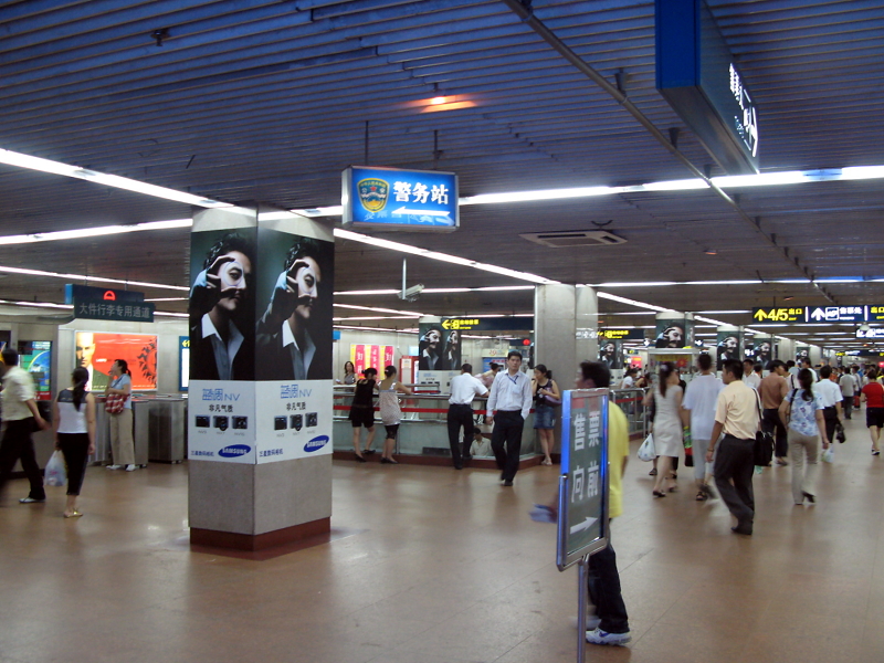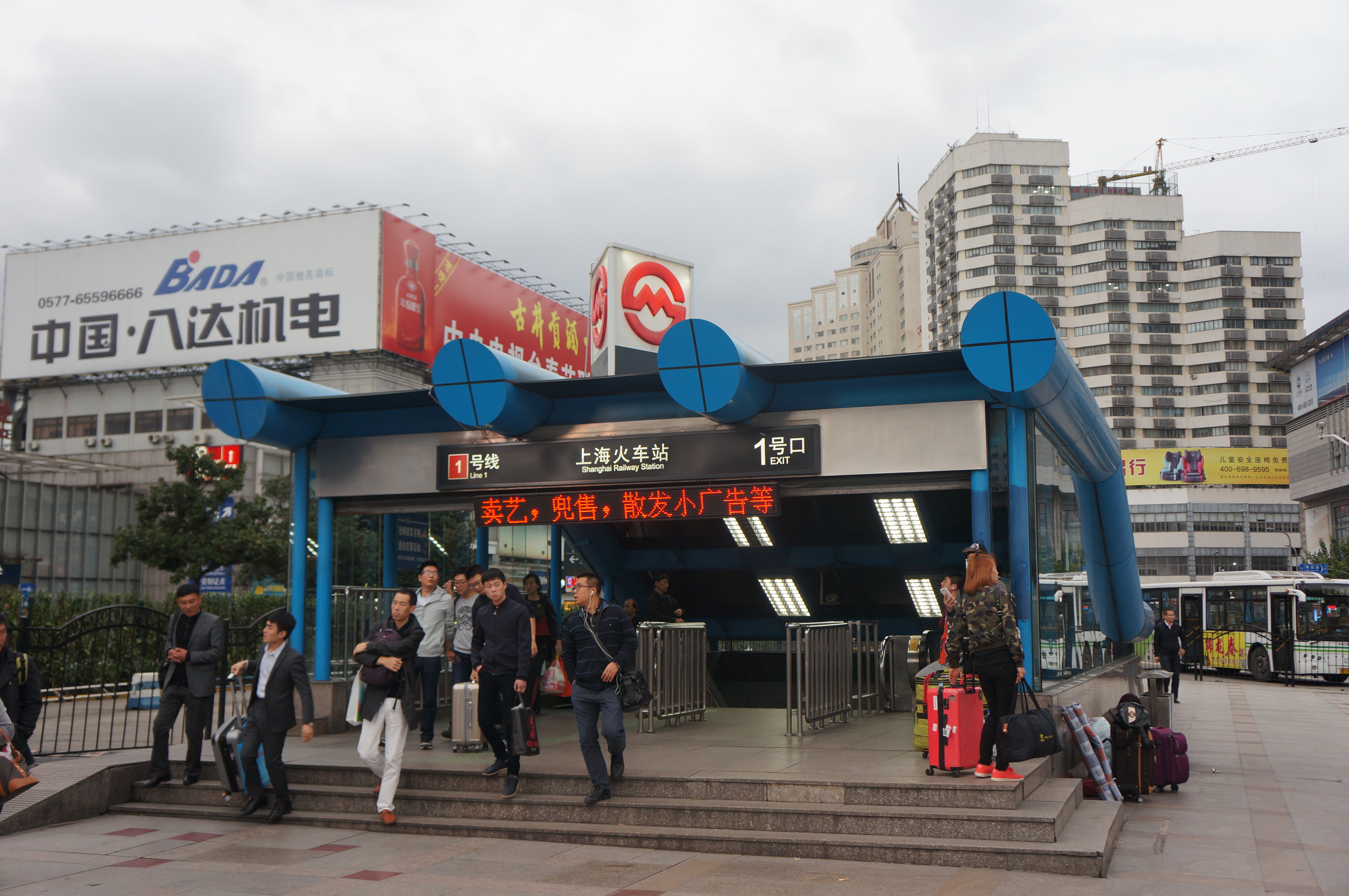 상하이역은 상하이 지하철 1호선, 3호선, 4호선이 지나는 역이다. 1호선은 지하 2층에 상대식 승강장으로, 푸진루 방면과 신좡 방면으로 운행한다. 3호선과 4호선은 1층에 상대식 승강장으로, 상하이 남역 방면과 장양 북로 방면으로 운행한다. 1호선은 6개의 출구가 있으며, 3, 4호선은 4개의 출구가 있다. 1995년 4월 10일 1호선이 개통되었고, 2000년 12월 26일 3호선, 2005년 12월 31일 4호선이 개통되었다. 상하이역, 상하이 우체국, 쑤저우강 등의 주변 지역과 연결된다.