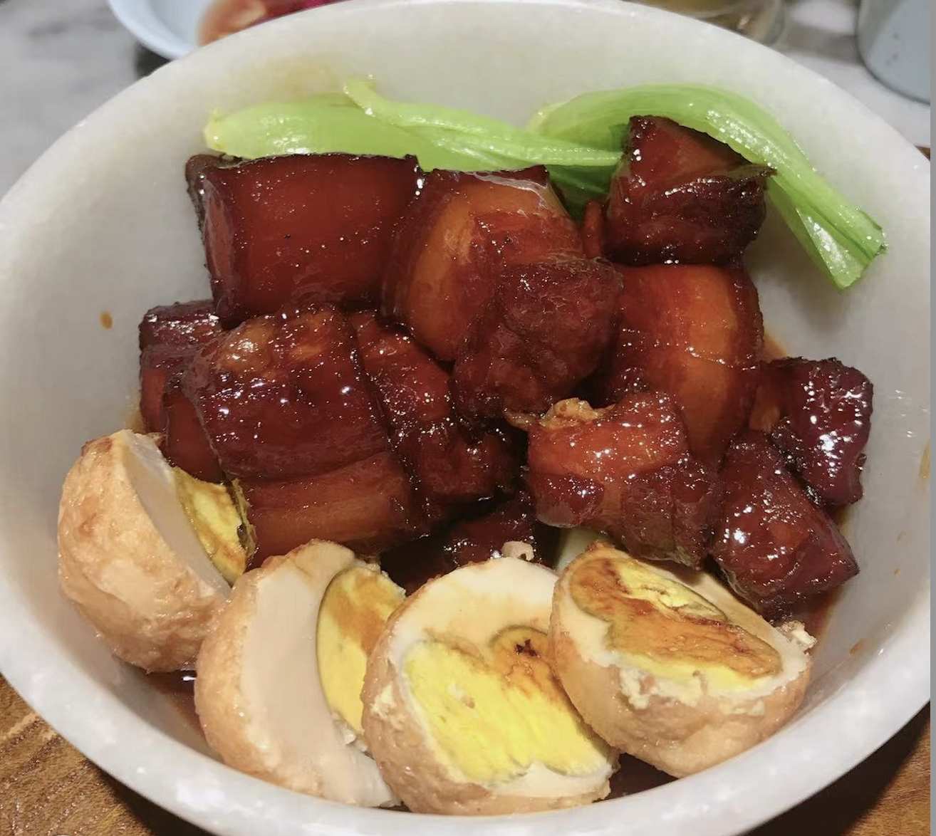 • 홍소육(红烧肉|훙사오러우중국어) - 상하이식 간장으로 오랫동안 조리한 돼지 삼겹살 요리이다.[9]
