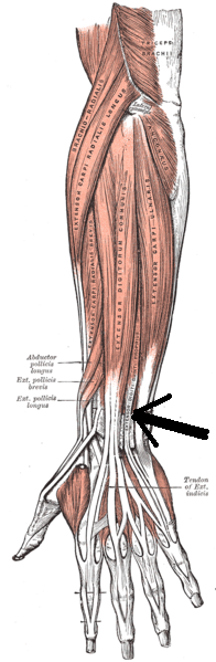 위치 | 위팔뼈 가쪽위관절융기의 앞부분 (온폄근힘줄) |