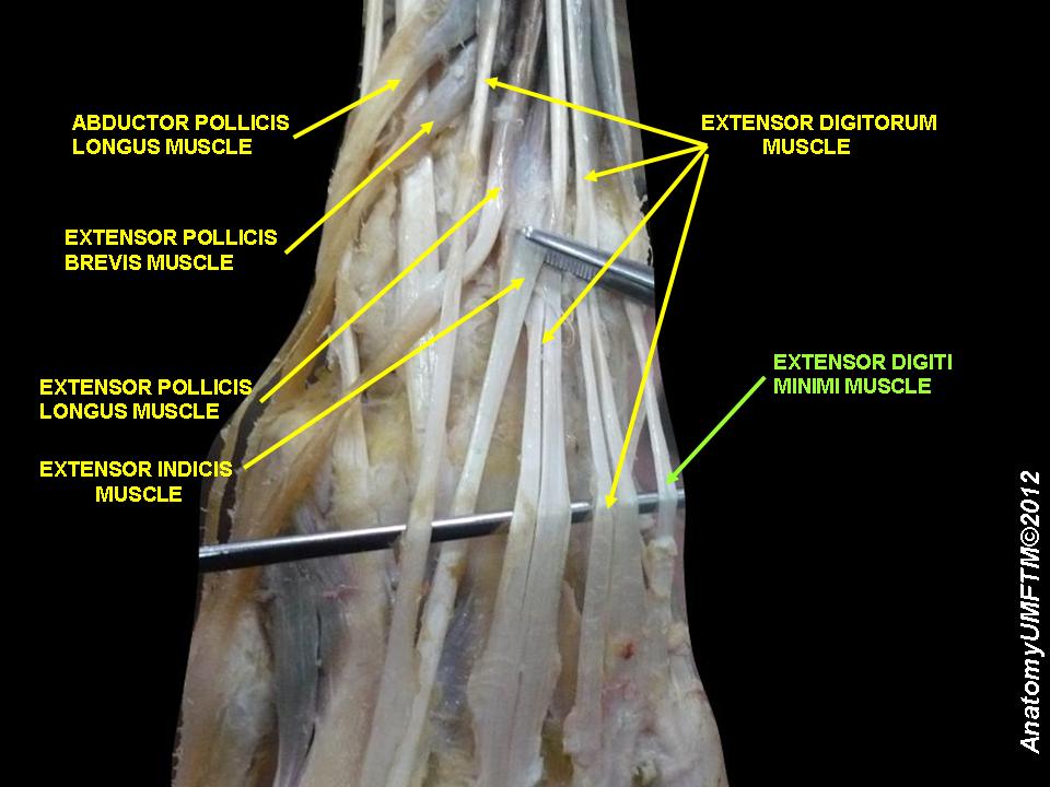 주된 작용 | 모든 관절에서 손목과 새끼손가락을 폄 |