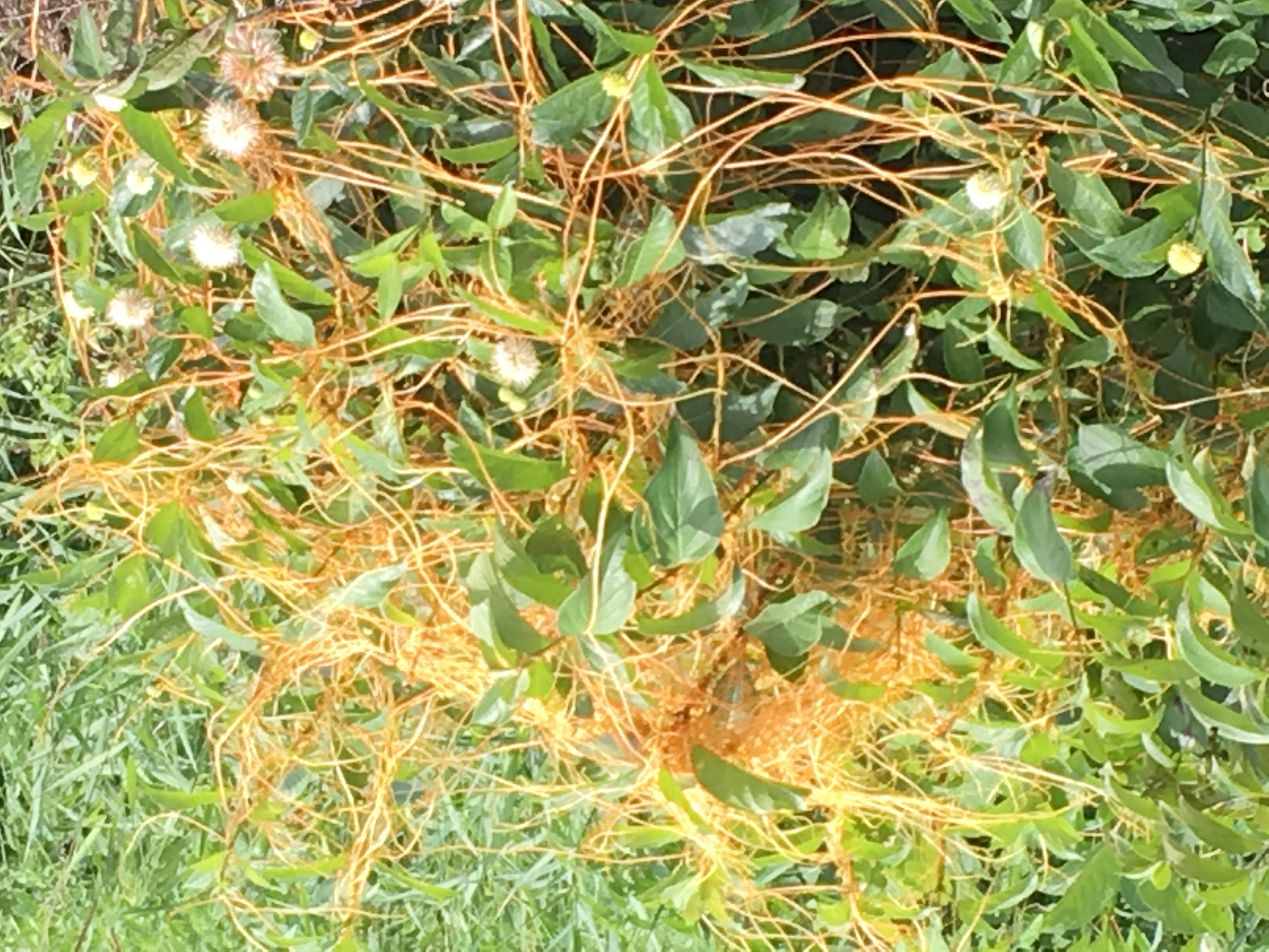 Cuscuta europaea가 Sambucus ebulus에 기생하는 모습