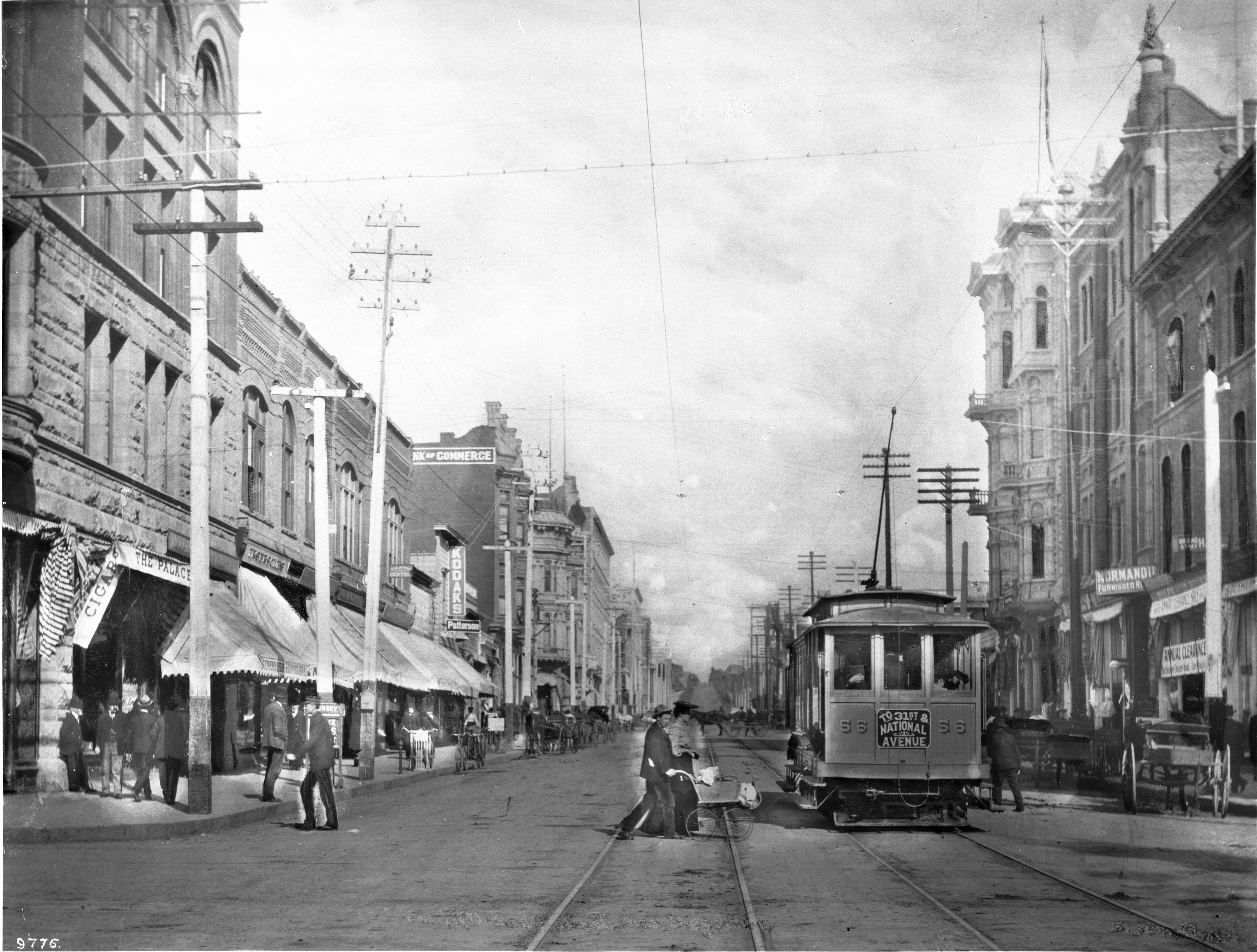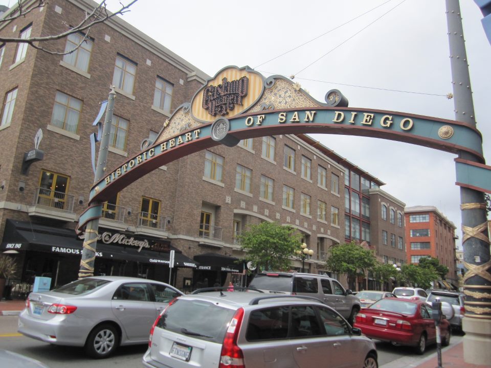1860년대 후반, 알론조 호튼은 "뉴 타운"이라고 부르는 만가 지역으로의 이전을 추진했는데, 이 지역이 바로 다운타운 샌디에이고가 되었다.[44] 호튼은 이 지역을 적극적으로 홍보했고, 사람들과 기업들은 샌디에이고 만에 인접한 위치 때문에 배송이 편리한 뉴 타운으로 이전하기 시작했다. 뉴 타운은 올드 타운으로 알려진 원래 정착지를 빠르게 능가했고 도시의 경제적, 행정적 중심지가 되었다.[44] 그럼에도 불구하고 샌디에고는 1878년 철도 연결이 생길 때까지 비교적 변방 도시로 남아 있었다. 1884년~1886년, 존 J. 몽고메리는 샌디에고 남쪽 오테이 메사에서 미국의 무동력 활공기로 최초의 제어된 비행을 함으로써 새로운 항공역학 과학을 개척하는 데 기여했다.