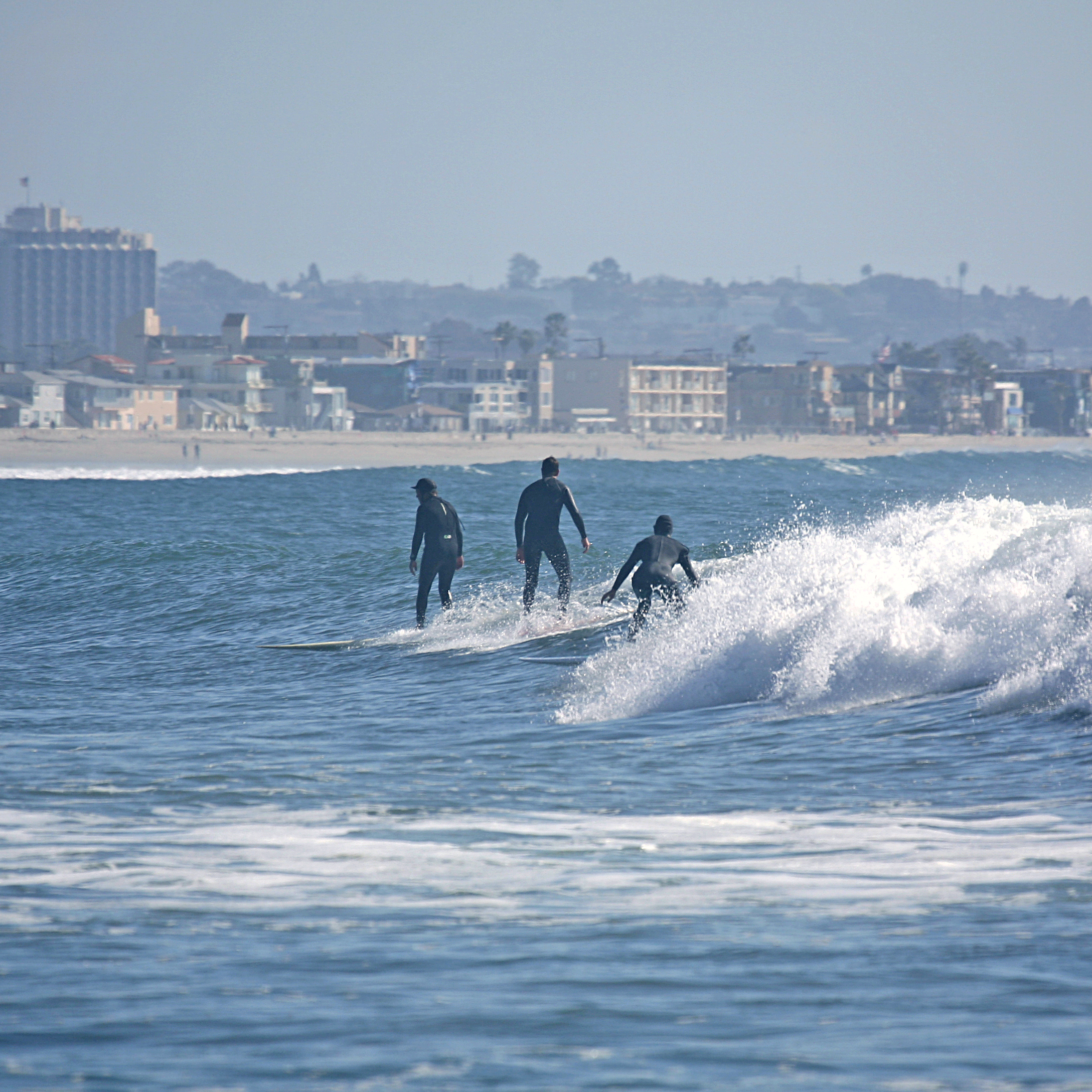 샌디에이고 만(San Diego Bay) 내에는 항만 시설과 미국 해군 기지들이 밀집해 있어 자연 해안은 적다. 관광객들이 찾는 해변은 시 북서부 태평양 연안에 있다. 북쪽부터 라호야 해변, 패시픽 비치, 미션 비치(Mission Beach), 오션 비치(Ocean Beach)가 이어진다. 주거 지역으로도 인기가 많으며, 부유층 주민들이 많이 거주한다.