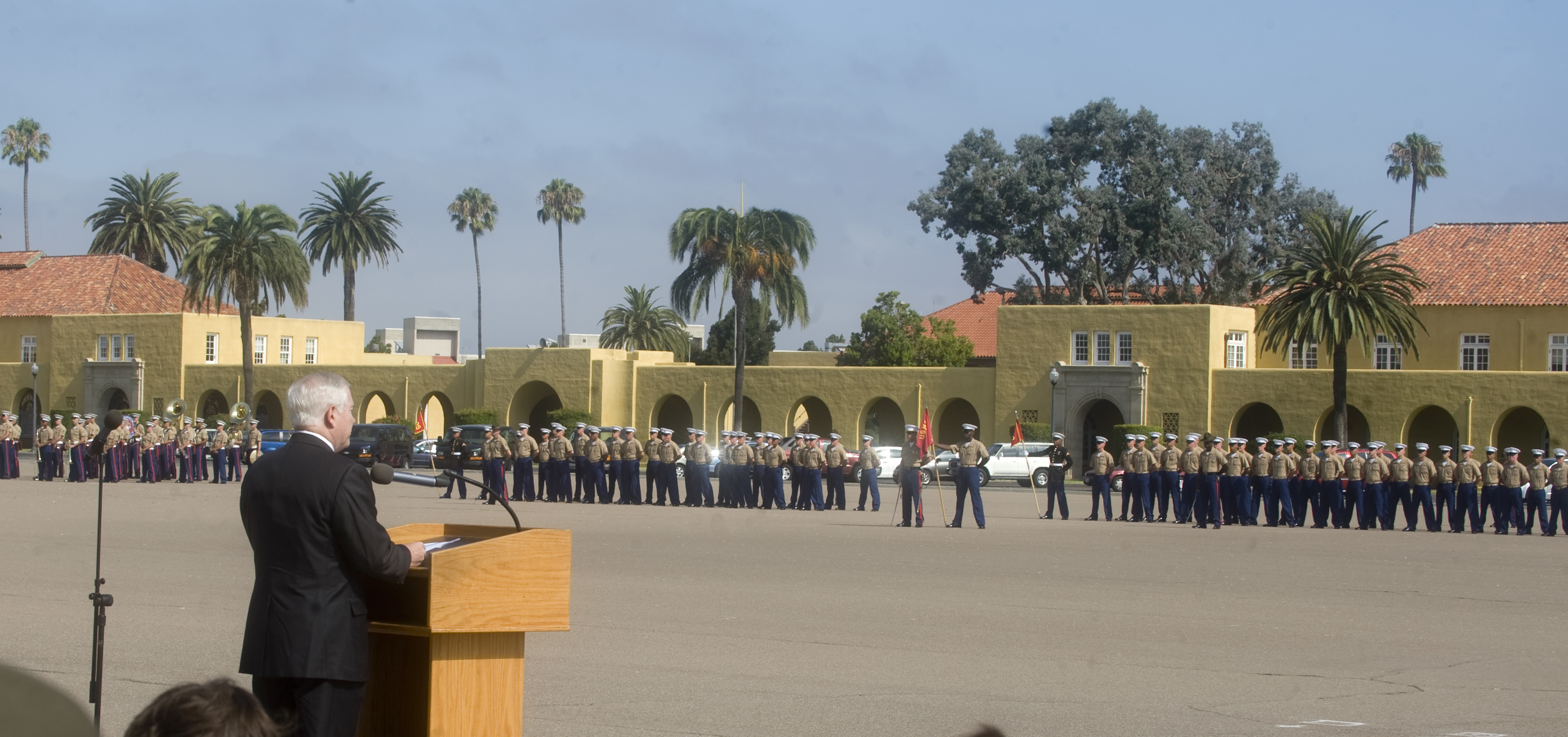 포인트 로마 반도의 남쪽 부분은 1852년 초부터 군사 목적으로 따로 떼어 놓았습니다. 그 후 수십 년 동안 육군은 일련의 해안 포병 포대를 설치하고 그 지역을 로즈크랜스 요새라고 명명했다.[53] 1901년 포인트 로마에 해군 석탄 기지가 설립되면서 중요한 미국 해군 주둔이 시작되었고, 1920년대에 크게 확장되었다.[54] 1930년까지 이 도시에는 샌디에이고 해군 기지, 샌디에이고 해군 훈련소, 샌디에이고 해군 병원, 매튜스 캠프, 그리고 키어니 캠프(현재 미라마 해병대 항공 기지)가 있었다. 이 도시는 또한 항공의 초기 중심지였다. 제1차 세계 대전 초기에 샌디에이고는 자신을 "서부의 항공 수도"라고 선언했다.[55] 이 도시는 1925년에 설립된 라이언 항공(후의 라이언 항공우주), 1923년에 설립된 컨솔리데이티드 항공(후의 컨베어)와 같은 중요한 항공기 개발업체와 제조업체의 본거지였다.[56] 찰스 A. 린드버그의 비행기 ''세인트루이스의 정신''은 1927년 샌디에고의 라이언 항공에서 제작되었다.[1]