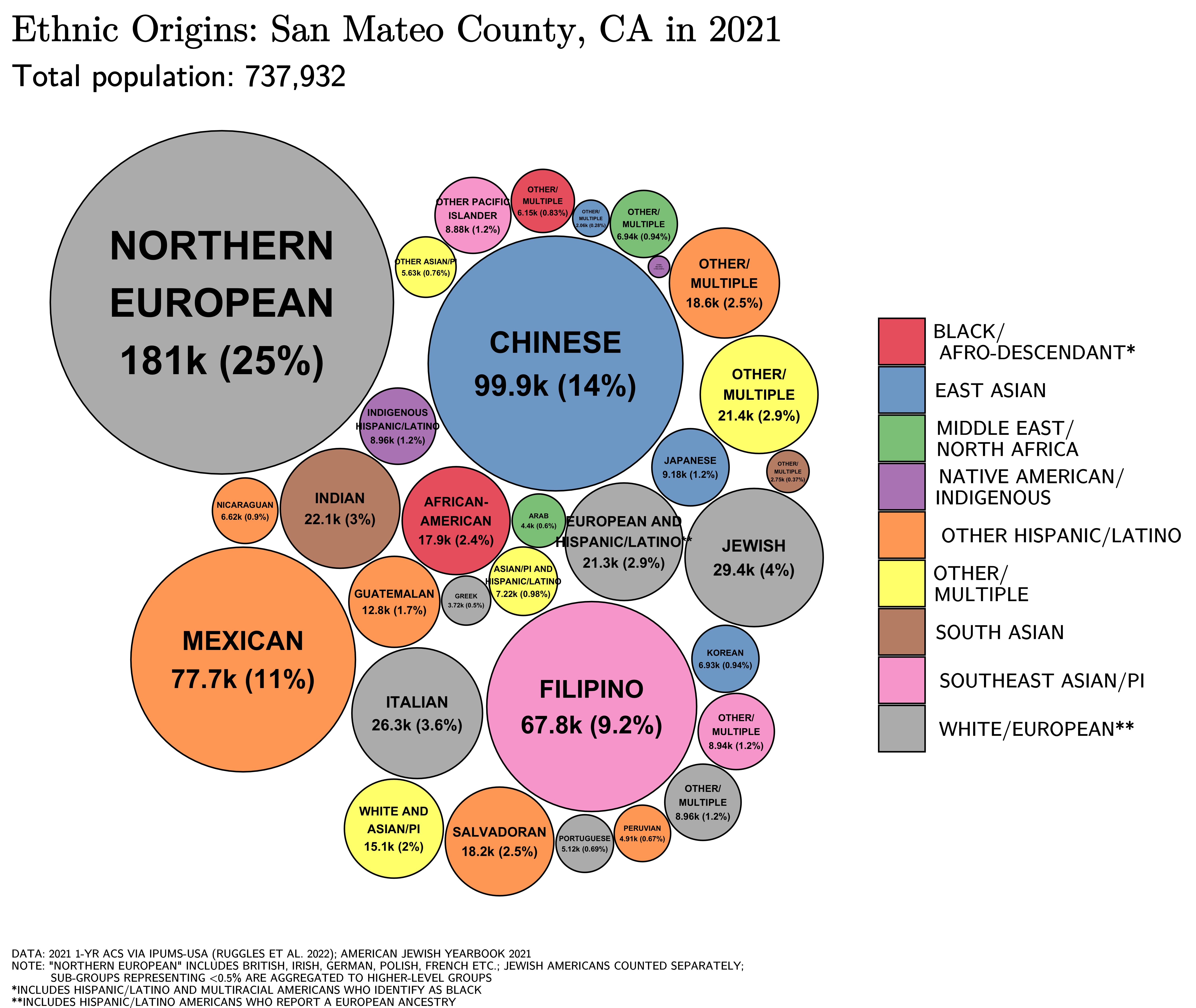 2012년 기준으로 샌머테이오 군은 통가 외 지역에서 통가인 인구가 가장 많은 곳 중 하나였으며, 약 13,000명의 통가계 미국인이 거주하는 것으로 추산되었다.[63]