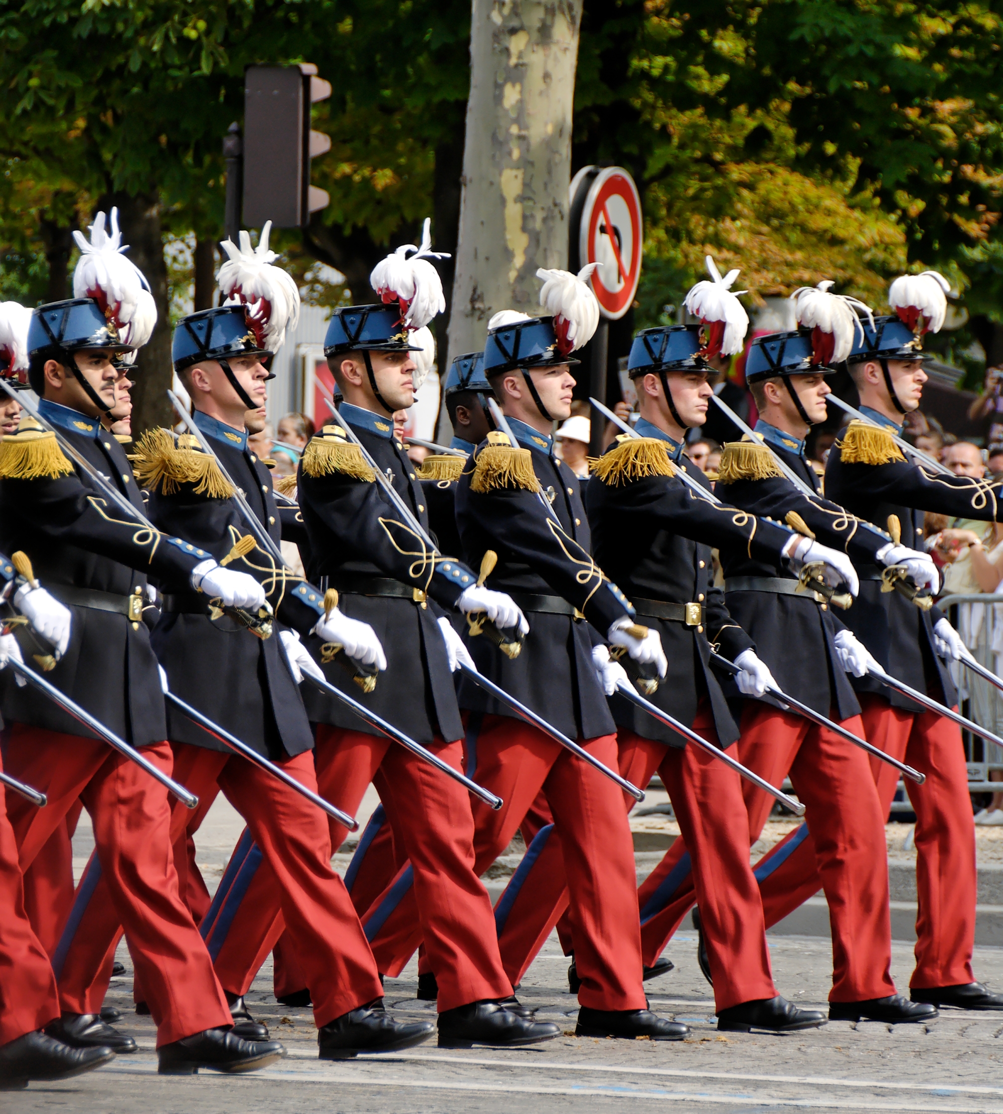 전통 행사로는 옛 병기와 제복을 사용한 전투 재현극, 식전 행사 등이 있으며, 파리 축제에서는 에콜 폴리테크니크, 프랑스 해군 사관학교 학생들과 함께 군사 퍼레이드를 진행한다.