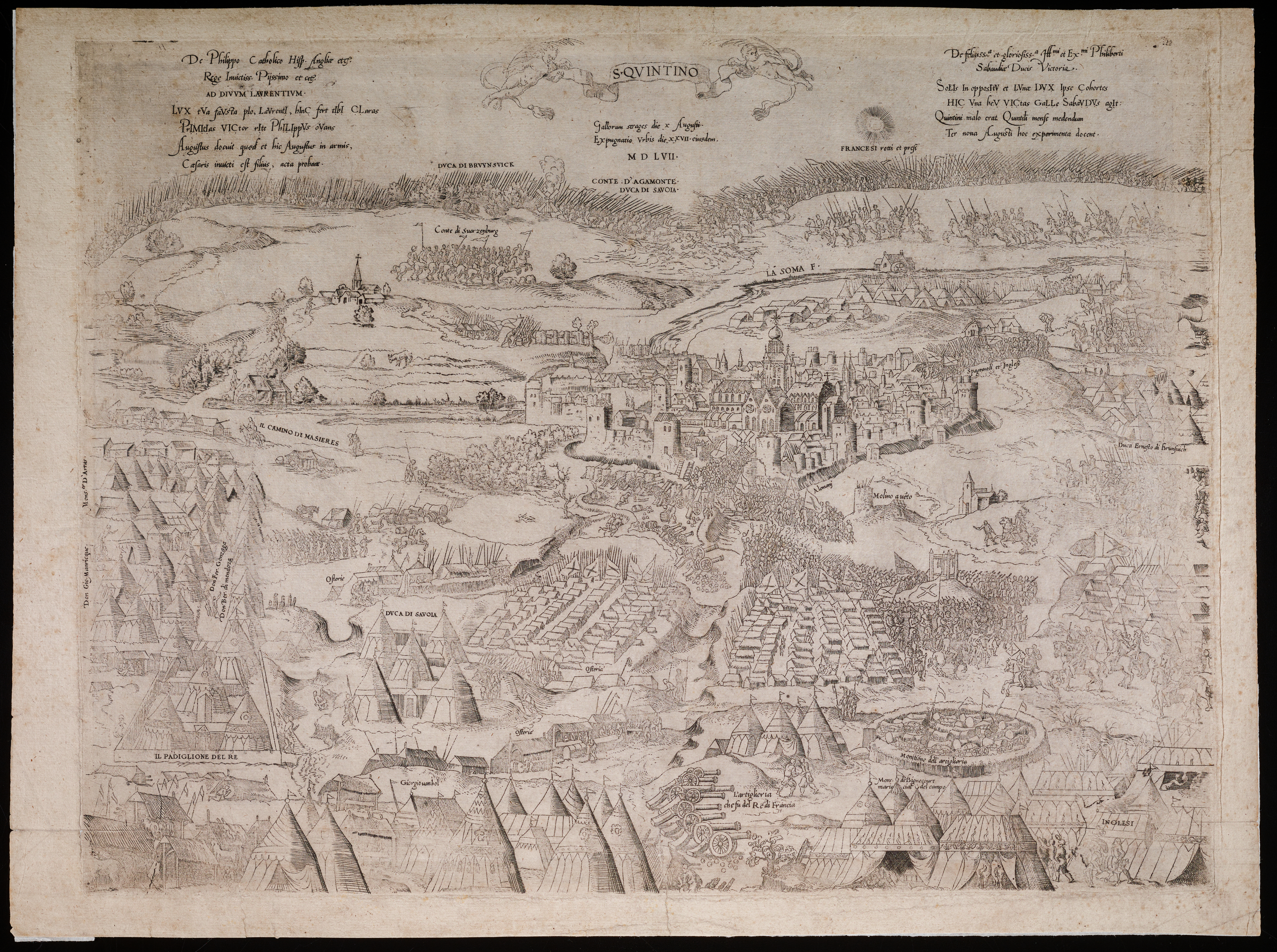 1557년 8월 10일 성 라우렌시오 축일에 벌어진 생캉탱 전투에서 사보이아 공국의 필리베르토는 영국 동맹군과 함께 생캉탱 시를 포위했다. 몽모랑시는 약 26,000명의 병력을 이끌고 도시를 구원하려 했으나, 필리베르토가 이끄는 군대는 이보다 두 배나 많은 병력을 보유하고 있었다. 몽모랑시는 습지를 통해 생캉탱에 접근하려 했지만, 철수가 지연되면서 스페인군에게 공격당해 패배하고 포로로 잡혔다.3. 2. 전투의 진행 과정