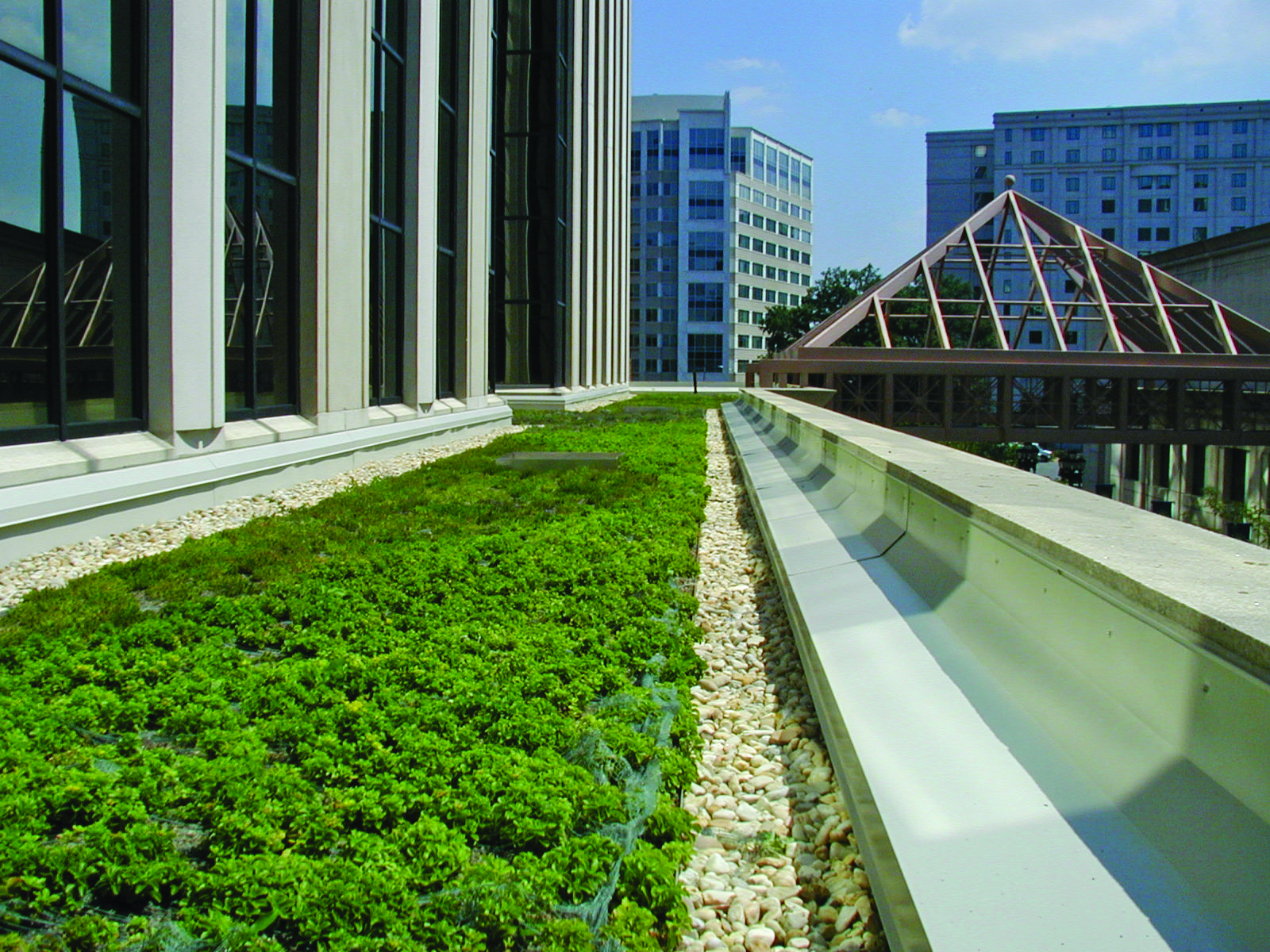 - 녹색 지붕은 표면 에너지 균형을 변경하고 도시 열섬 현상을 완화하는 데 도움을 준다. 생태 지붕을 디자인에 통합하면 공기질, 기후 및 물 유출에 도움이 된다.