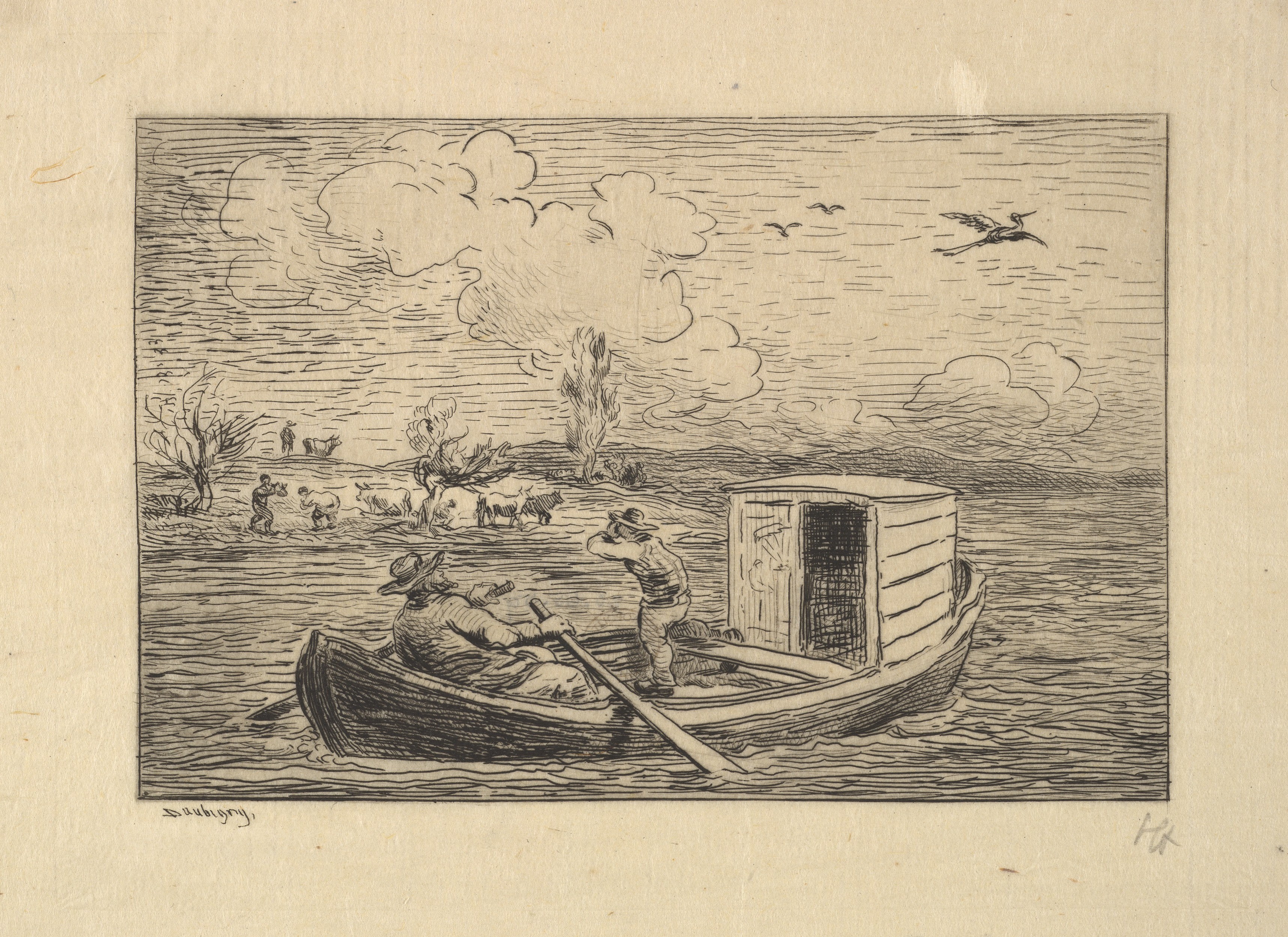 처음에 도비니는 실내에서 그림을 그렸지만, 1843년 바르비종파에 합류하여 자연 속에서 야외 사생을 하면서 화풍이 바뀌었다. 1852년에는 카미유 코로를 만나 큰 영향을 받았다. 그는 '보탱(Botin)'이라는 작업용 보트를 타고 센강과 우아즈강을 따라 그림을 그렸으며, 오베르쉬르우아즈 주변 지역을 자주 방문했다. 1852년부터 귀스타브 쿠르베의 영향을 받아 함께 작업하며 옵테보의 풍경을 담은 작품들을 그렸다.[1]