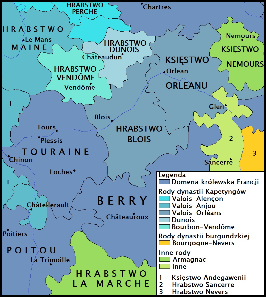 방돔 백작령(comté)이자 공작령(duché) 지도. Hrabstwo Vendôme이라고 표기되어 있다.