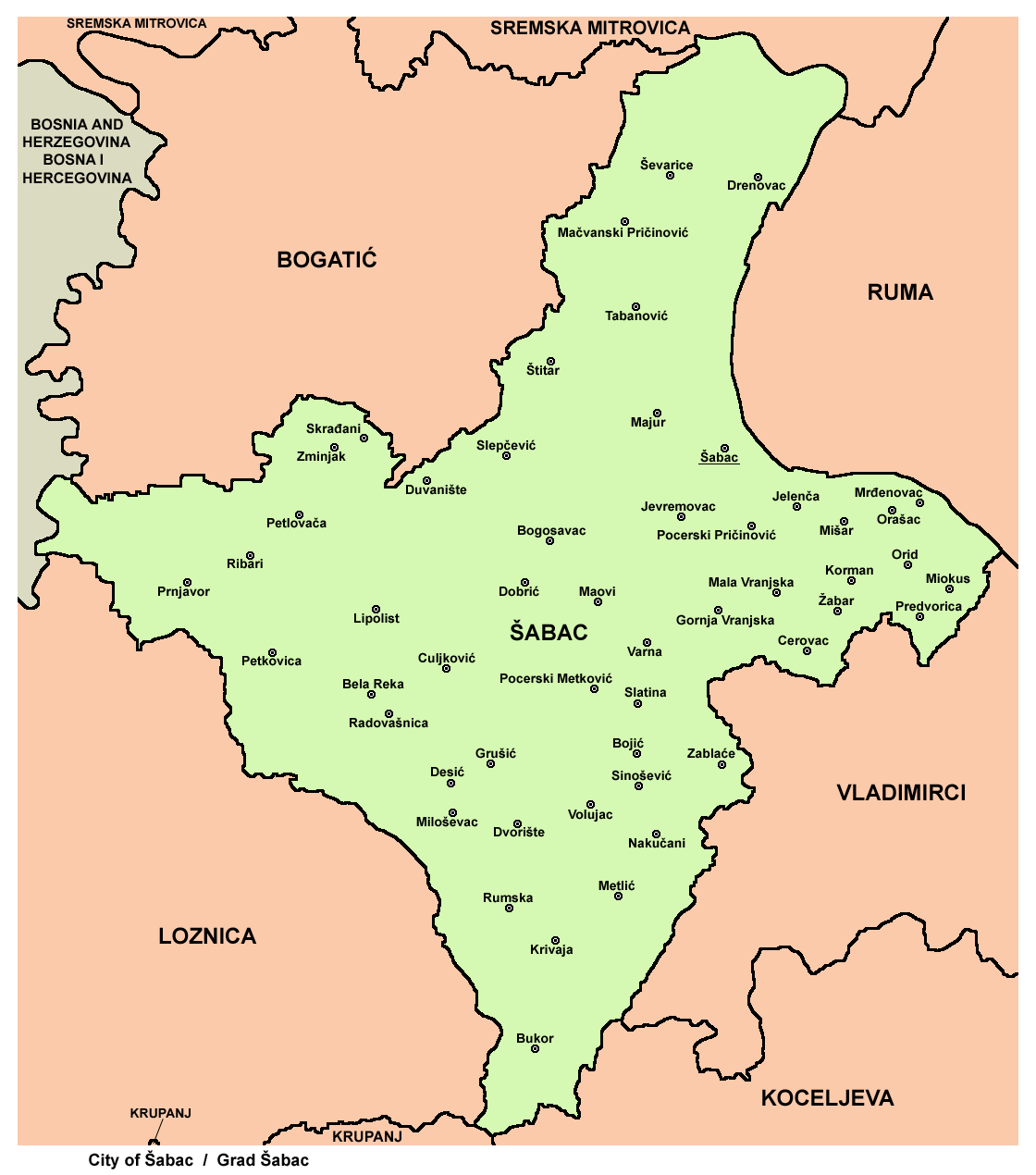 샤바츠 시에는 벤스카 바라, 바이어, 카사르스케 리바데, 도니 쇼르, 지카 포포비치, 예브레모바 니콜레, 트르칼리슈테, 카미차크, 카메냐크, 레트니코바츠, 프레키 쇼르, 시푸르스케 리바데, 지비나르니크 등의 도시 지역 공동체가 있다.