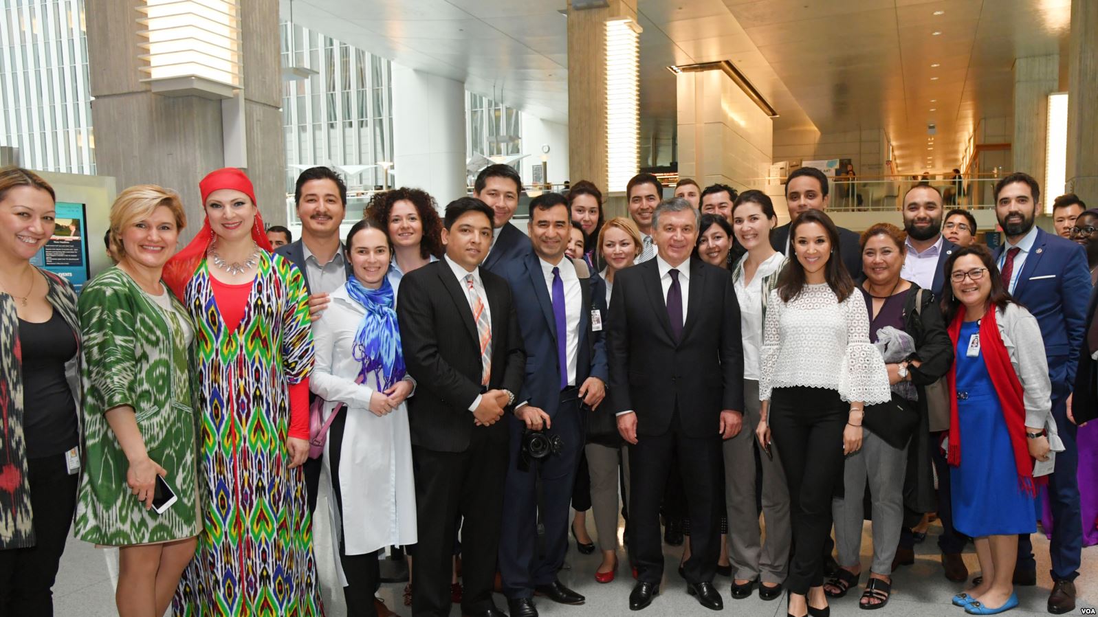 미국에 있는 우즈베키스탄 교민들과 만나는 모습