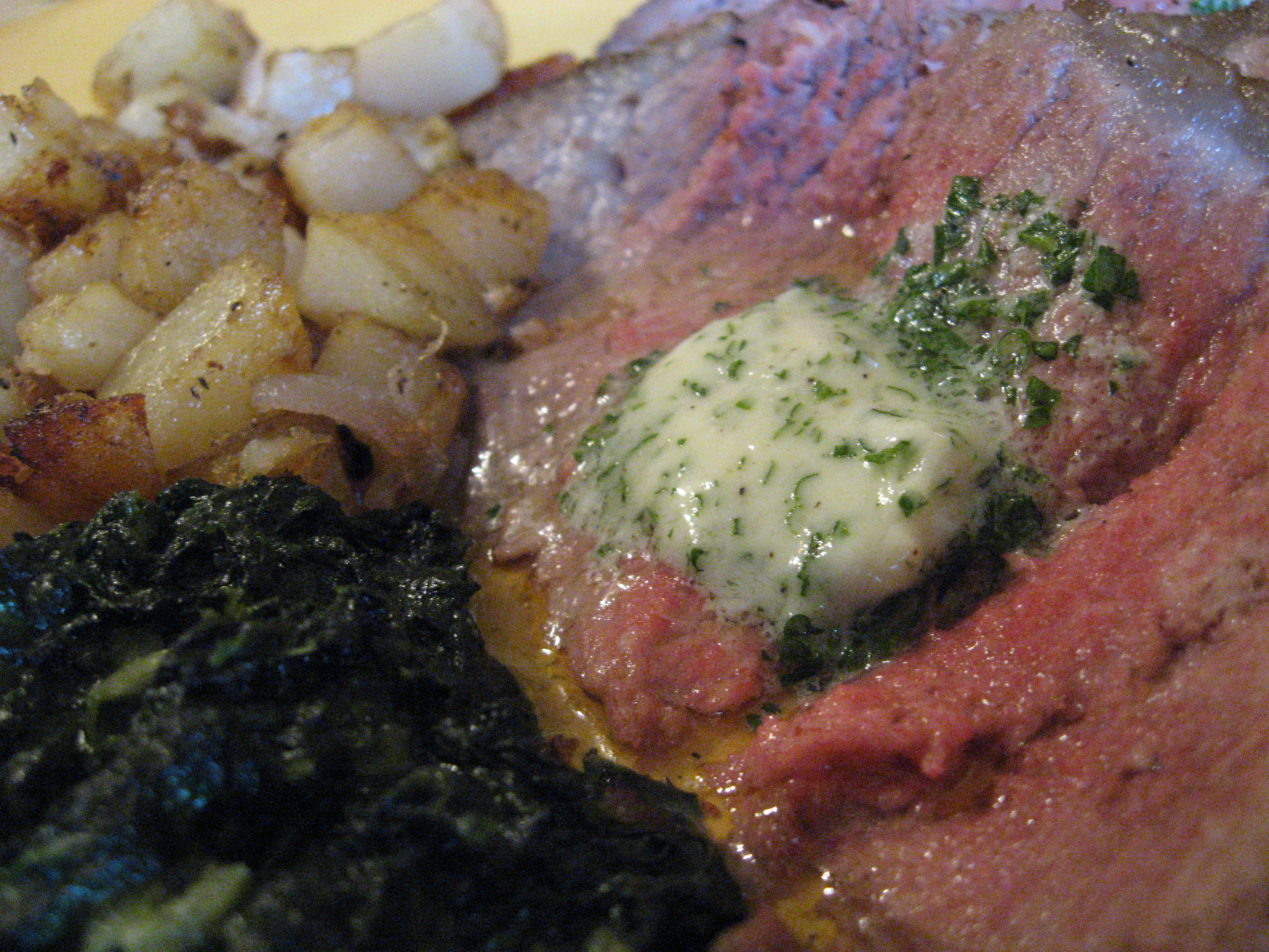 두껍게 썬 안심, 포터하우스, 또는 설도 스테이크를 모양을 잡아 꼬챙이에 꽂아 한쪽 면을 굽는다.[17] 고기를 굽는 동안 판자를 뜨거운 오븐에 넣어 연기가 날 때까지 가열한다. 준비가 되면 판자를 오븐에서 꺼내 버터를 바른다. 고기가 5~7분 동안 익으면 불에서 꺼내 구운 면이 아래로 향하게 하여 판자 위에 올려놓는다.[17] 그런 다음 장미 튜브가 달린 페이스트리 백을 통해 으깬 감자를 판자 위에 직접 짜서 고기 주변에 물결 모양의 테두리나 더 복잡한 장식을 만든다. 속을 채운 피망이나, 또는 속을 채운 토마토를 1인당 1개씩 감자 테두리에 눌러 넣는다. 볶은 버섯을 위에 얹고 판자 전체를 뜨거운 오븐에 다시 넣어 고기가 원하는 만큼 익고 감자가 살짝 갈색이 되며 채소가 부드러워질 때까지 굽는다. 그런 다음 고기에 소금, 후추, 파프리카로 간을 하고 버터를 약간 바른 다음 물냉이로 마지막 장식을 추가한다.[17]