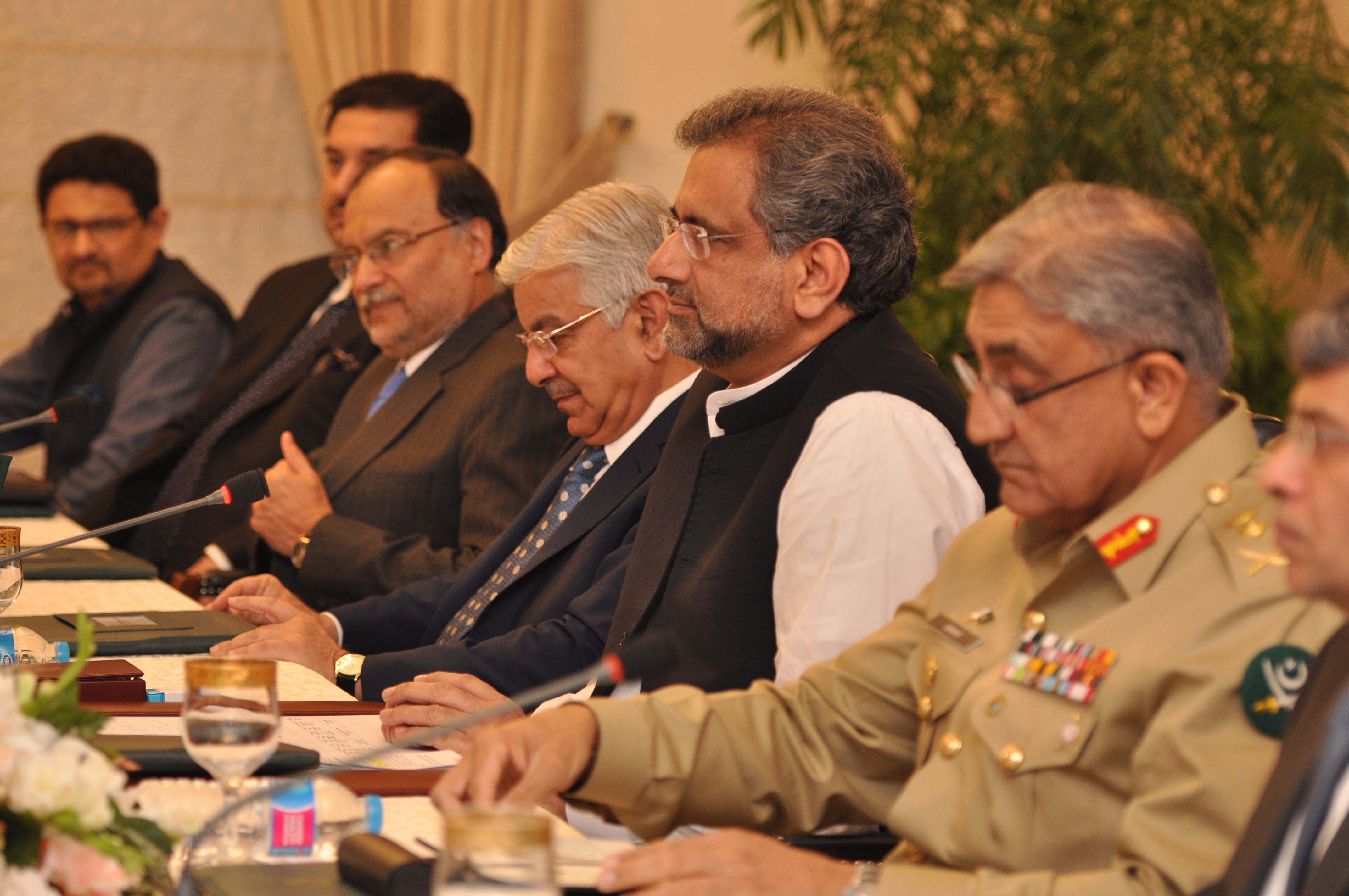 샤히드 하칸 아바시는 총리직을 맡은 후, 샤리프와 협의하여 43명의 내각을 구성했다.[102][103] 2017년 8월 4일에 취임한 43명의 장관 중 27명은 연방 장관이었고 16명은 국무 장관이었다.[104][105] 니사르 알리 칸을 제외하고, 아바시는 전임자인 나와즈 샤리프의 모든 내각을 유지했으며,[136] 그들 대부분은 이전의 직책을 유지했다.[106][107] 이전 내각에서 내무부 장관이었던 니사르 알리 칸은 PML-N 지도부와의 이견을 이유로 아바시 내각에 합류하는 것을 거부했다.[108][109] 내각은 파키스탄 정의운동으로부터 거대한 규모로 비판을 받았지만,[110] ''더 네이션''에서는 칭찬을 받았다.[111] 로이터는 내각이 총선거를 앞두고 "지지를 강화하기 위한 것으로 보인다"고 말했다.[112]