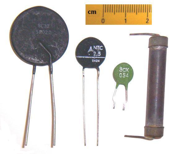 - NTC (Negative Temperature Coefficient, 부특성) 서미스터는 온도가 올라가면 저항이 내려간다. 이는 열적 요동으로 인해 전자가 원자가띠에서 전도띠로 이동하기 때문이다. NTC 서미스터는 주로 온도 센서나 회로와 직렬로 연결하여 돌입 전류 제한기로 사용된다.[3]