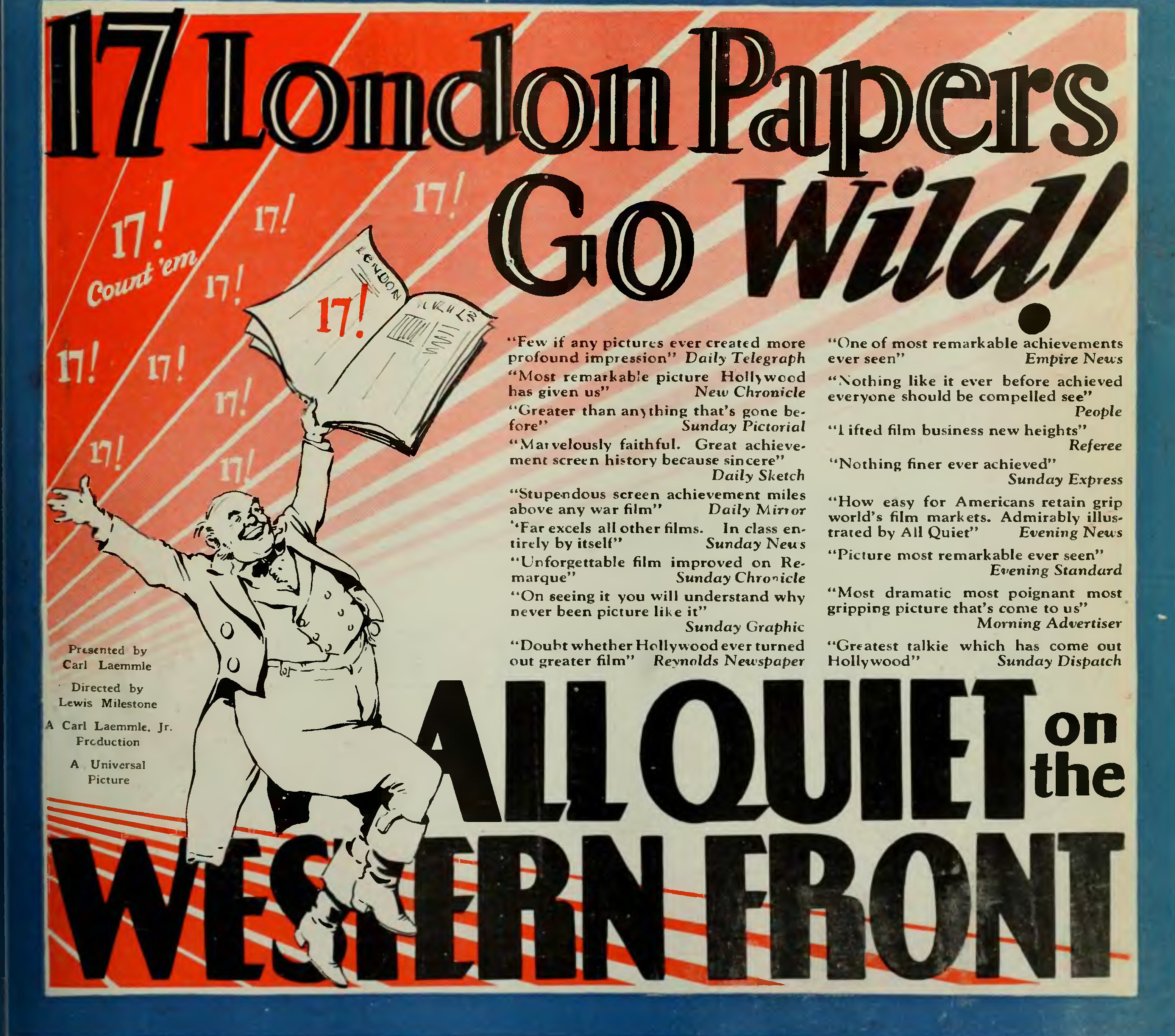 호주에서는 1930년부터 1941년까지 "평화주의"를 이유로 상영이 금지되었고,[26] 이탈리아와 오스트리아에서도 1931년 금지되었다가 1980년대에 해제되었다.[28] 프랑스에서는 1963년까지 상영이 금지되었다.[28]