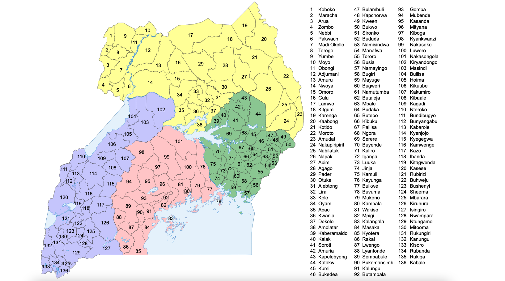 92 | 키리얀동고 현 | Kiryandongo | 키리얀동고 | 268,188 | 3624.1km2 | 74.0 |