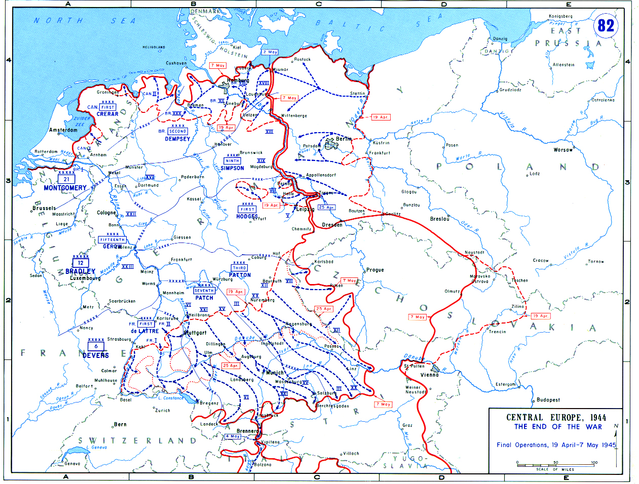 한편, 미 제3군은 체코슬로바키아 국경을 넘어 플젠을 해방했지만, 아이젠하워의 명령에 따라 진격을 멈추었다.