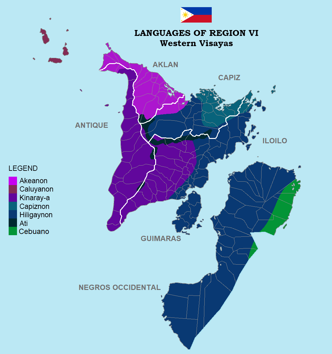 힐리가이논어 | 일로일로, 기마라스, 카피스, 안티케, 아클란 (지역 공용어) |