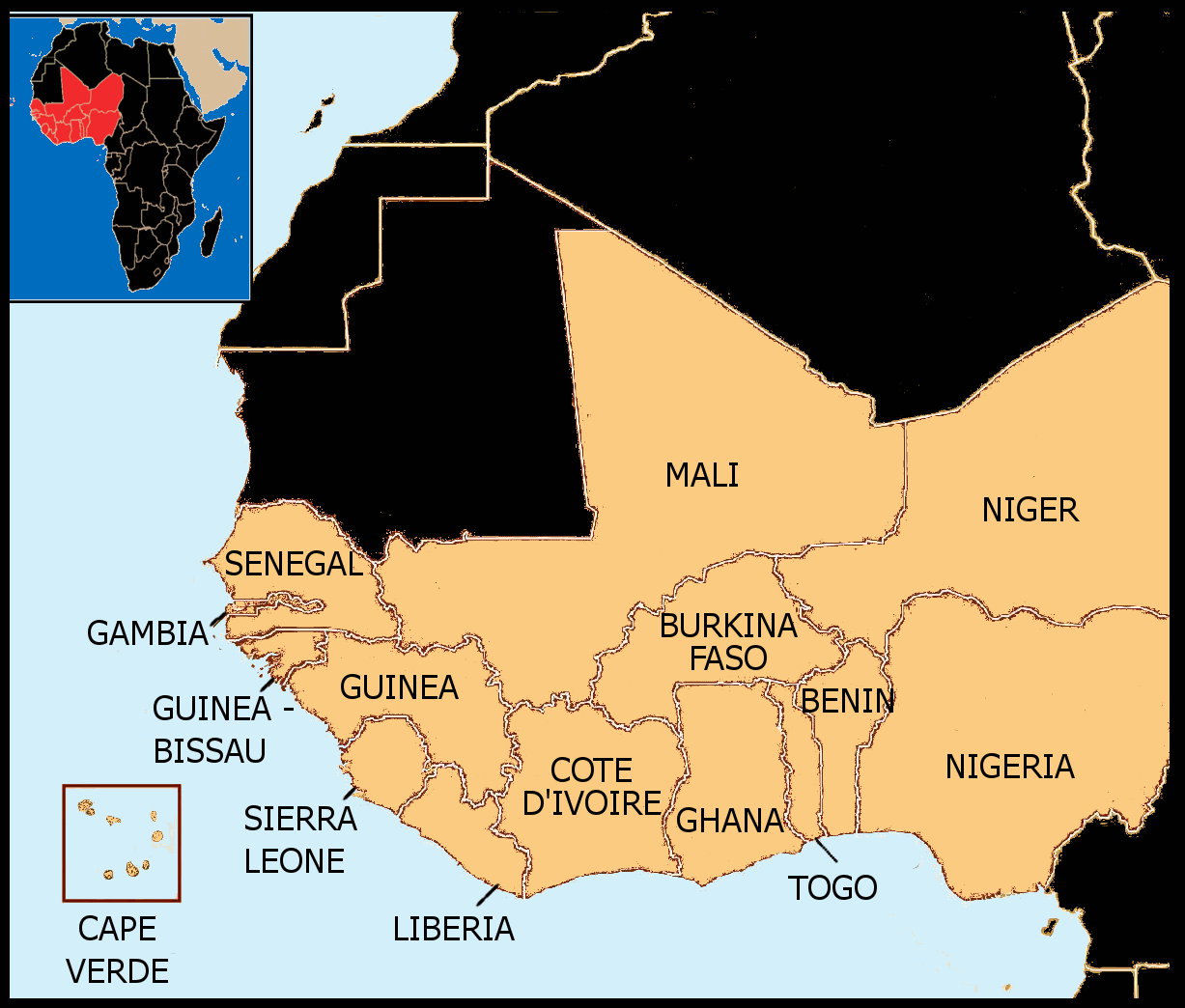 국가 | 베냉 부르키나파소 카보베르데 감비아 가나 기니 기니비사우 코트디부아르 라이베리아 말리 모리타니 니제르 나이지리아 세네갈 시에라리온 토고 |