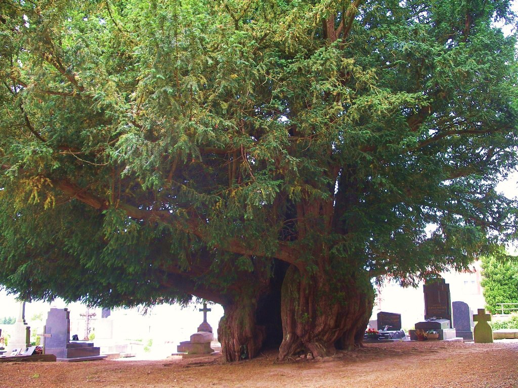 주목은 전통적으로 영국, 웨일스, 스코틀랜드, 아일랜드, 북부 프랑스(특히 노르망디)의 교회 묘지에서 정기적으로 발견된다. 라 에 드 루토 또는 라 랑드-파트리에서 그 예를 찾아볼 수 있다. 라 에 드 루토의 주목나무 중 하나 안에는 40명까지 설 수 있으며, 르 메닐-시부의 주목이 둘레 13m로 가장 클 것으로 추정된다.[53] 주목은 매우 크게 자랄 수 있으며(지름 5m 이상), 2,000년 이상 살 수 있다. 때때로 수도사들은 머크로스 수도원(아일랜드) 또는 주미에주 수도원(노르망디)처럼 수도원 한가운데에 주목을 심기도 했다.