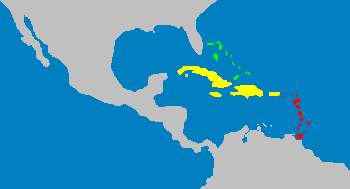 독립 국가 (13개) | 앤티가 바부다 바하마 바베이도스 쿠바 도미니카 연방 도미니카 공화국 그레나다 아이티 자메이카 세인트키츠 네비스 세인트루시아 세인트빈센트 그레나딘 트리니다드 토바고 |