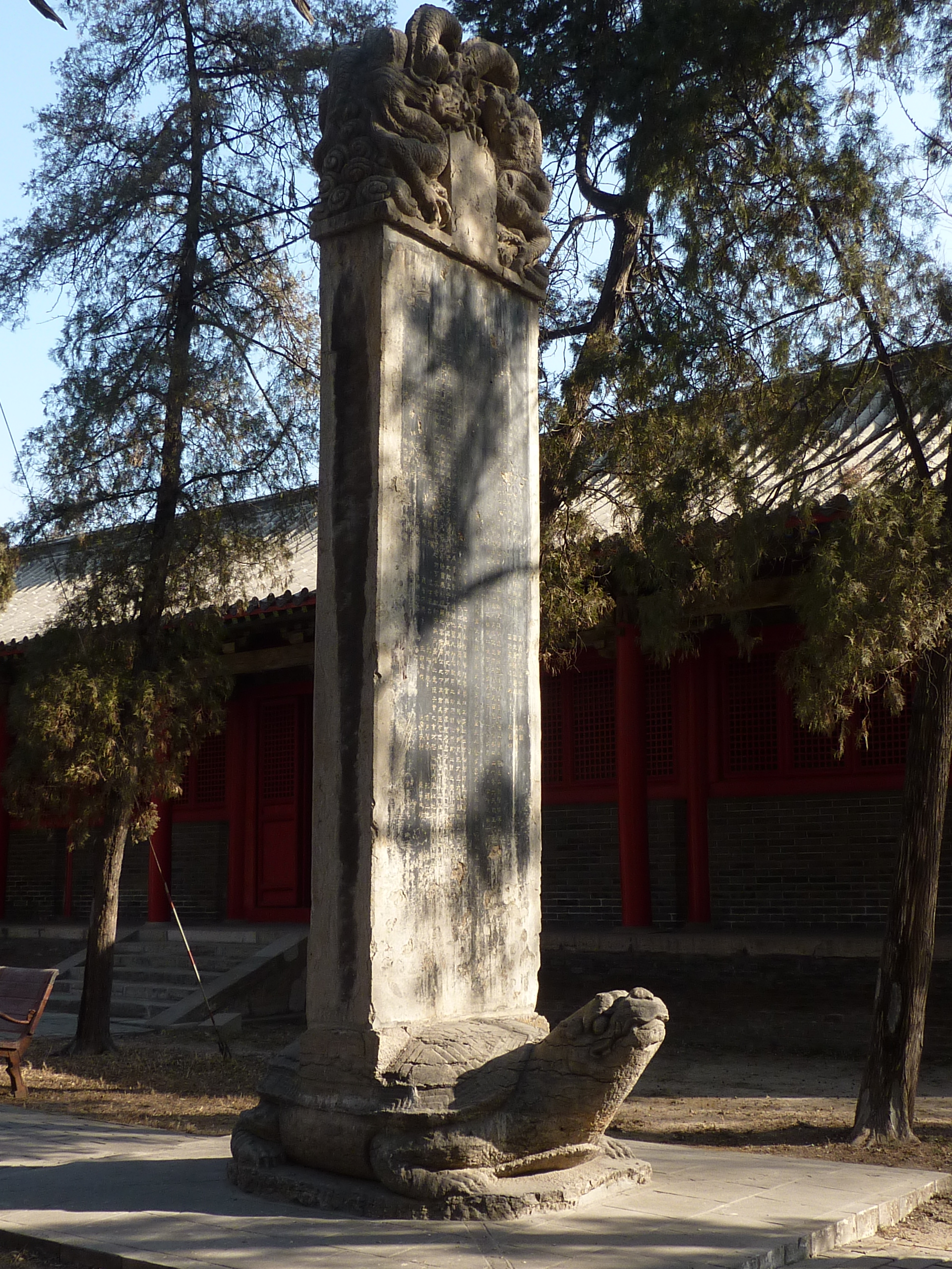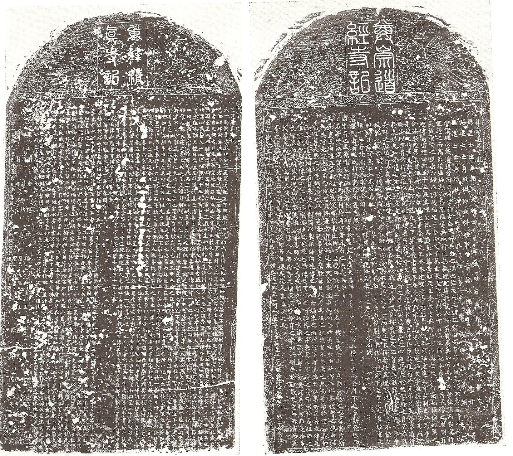 원래 목적보다 초과된 수천 개의 비석들은 서안의 비림 박물관에 모여 있으며, 이는 인기 있는 관광 명소이다. 다른 곳에서도 베이징의 동월묘(東嶽廟), 오탑사(五塔寺), 종루(鐘樓) 등 특정 장소에서 많은 원치 않는 비석을 찾아볼 수 있다. 이 비석들에 새겨진 길고 자세한 비문들은 대부분 흰색 대리석에 1인치 정도 크기의 글자로 가볍게 새겨져 있어 보기 어렵다.