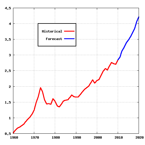 IEA는 2010년의 일간 석유 수요가 로 증가할 것으로 예측하며, 아시아 국가들, 특히 중국이 이 증가량의 상당 부분을 차지할 것이라고 보았다.[186] 중국 국립 석유 공사에 따르면, 중국의 석유 수요는 2009년에는 3.7% 증가했지만 2010년에는 5%까지 증가할 수 있다고 한다.[187]