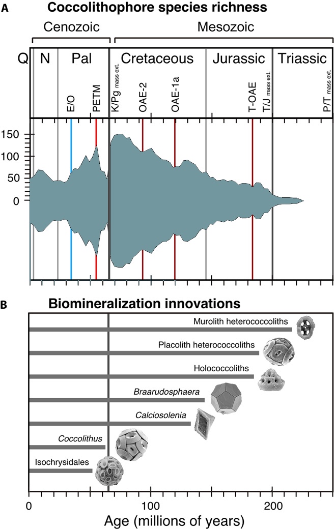 (A) 코콜리투스 펠라기쿠스(''Coccolithus pelagicus'')