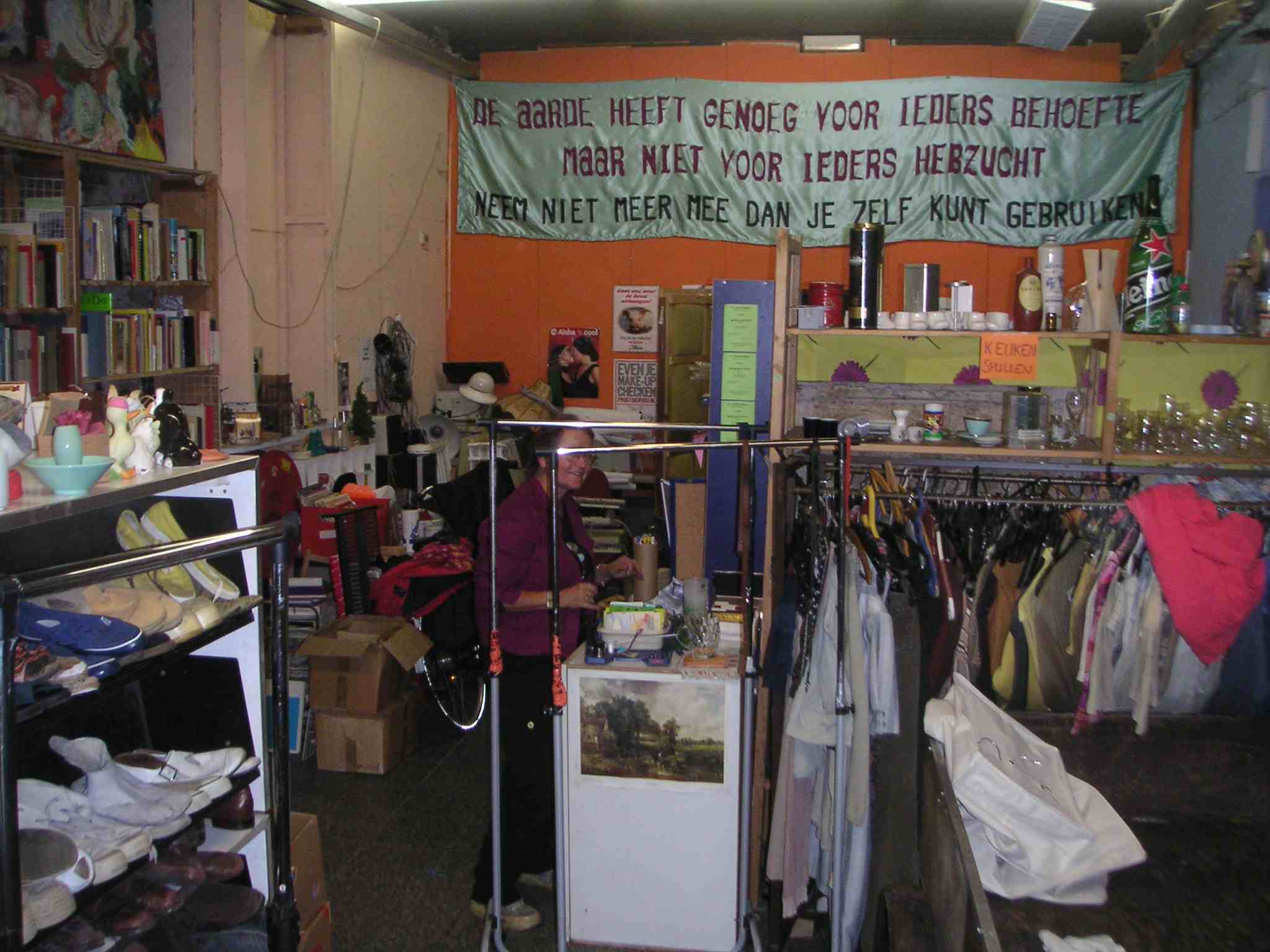 평화의 자녀들(1812년–1889년)은 유토피아적 퀘이커 종파로, 샤론 사원을 건립하여 가난한 사람들을 돕고, 온타리오 주 최초의 노숙자 쉼터를 건설했다.[49] 이들은 온타리오 주 최초의 협동조합인 농민 창고를 조직하고, 온타리오 주 최초의 신용조합을 설립했다.[49] 그러나 자선이 채무자를 위험에 빠뜨릴 수 있다는 것을 인지하고, 자선 기금을 소액 신용 기관과 유사한 신용조합으로 전환했다.[49] 이는 돈이 사원 의식에서 자선으로, 다시 대출이라는 대안적 교환 영역으로 이동한 특이화의 한 예시이다.[49]"무료 나눔 가게", "프리스숍(freeshops)" 또는 "프리 스토어(free stores)"는 모든 물품이 무료인 가게로, 자선 가게와 유사하지만 모든 것이 무료로 제공된다.[59] 책, 가구, 의류, 가정용품 등이 무료로 제공되며, 일부는 물물교환 정책을 운영하기도 한다. 이는 화폐 체계에 대한 대안을 제공하며, 무정부주의 1960년대 반문화 그룹 디거스는 무료 가게를 열어 재고를 무료로 제공하고, 무료 음식과 약물을 배포하며, 돈을 나눠주고, 무료 음악회를 개최했다.[60] 디거스는 잉글랜드 디거스(지도자 제러드 윈스탠리)의 이름을 따서 돈과 자본주의가 없는 사회를 만들고자 했다.[61][62]