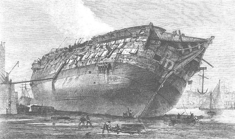 기울어진 상태로 템스강 강기슭, 로더히스 앞바다에 정박한 모습, 1871년경