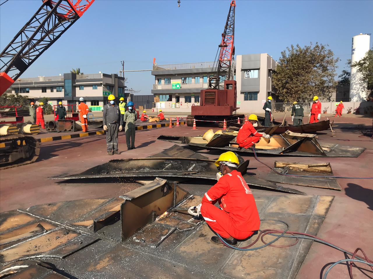 • 알랑 선박 해체장(인도)에서 가스 절단기를 사용하여 강철판 절단