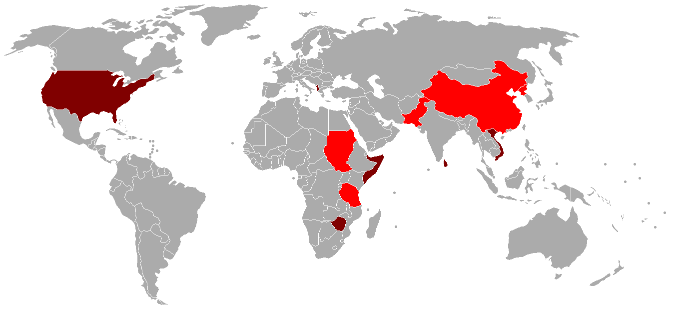 과거 선양 J-5 운용 국가는 다음과 같다.